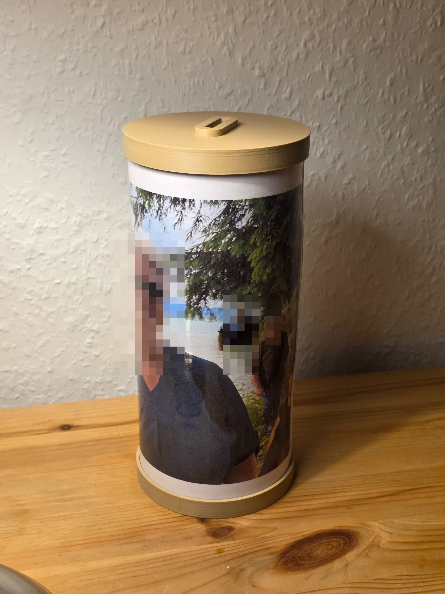Hộp tiết kiệm có chiều cao và kích thước tương ứng với một tờ giấy DIN A4, rất tiện để dán hình tạo động lực hoặc thanh tiến độ theo dõi mục tiêu tiết kiệm của bạn.