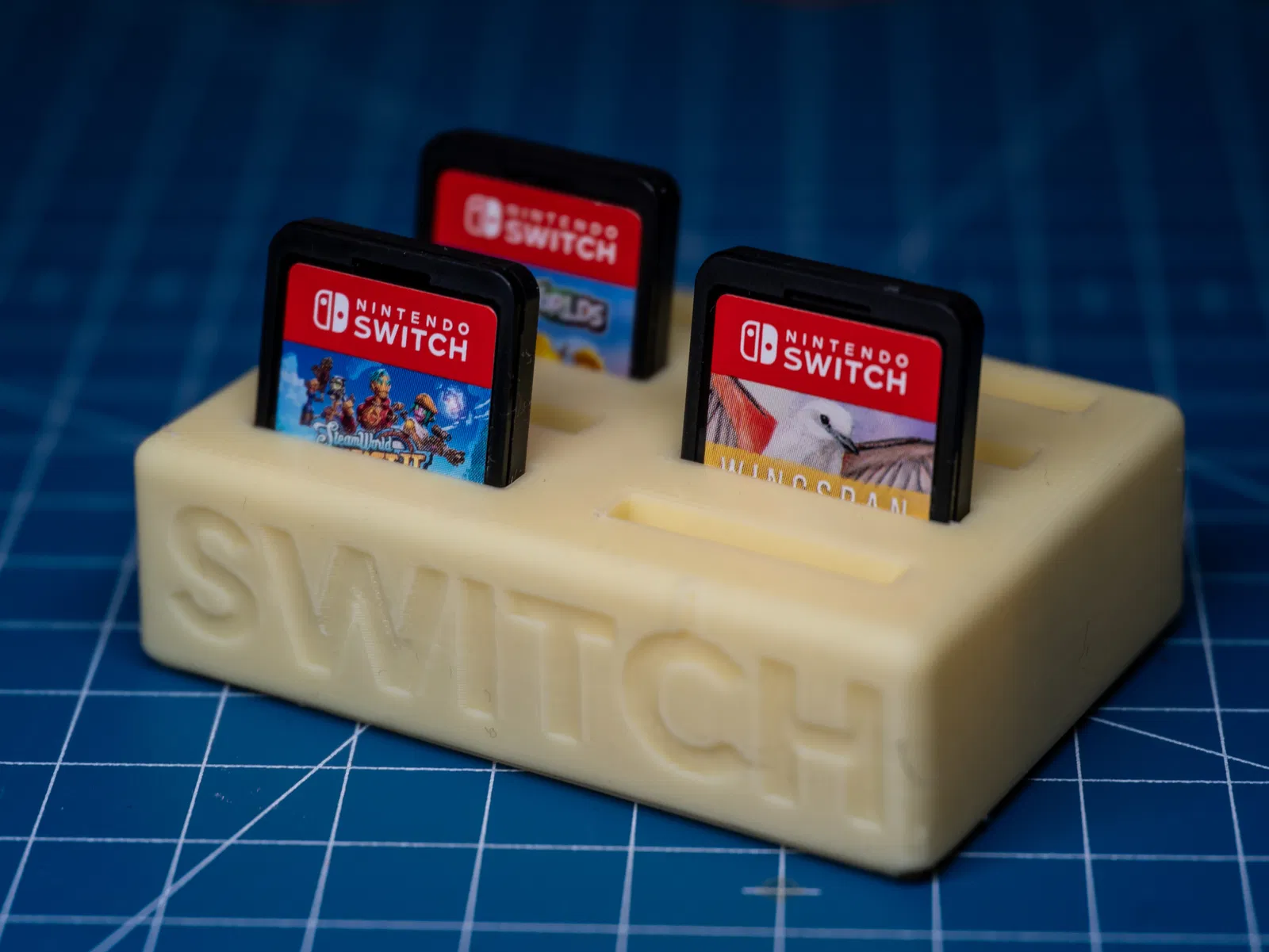 Kệ đỡ thẻ game Nintendo Switch (Nintendo Switch GameCard Stand) cho 8 tựa game, dùng được cho game thẻ Switch 1 và Switch 2. Có 2 file: Standard và bản nghiêng 10° để nhìn, đọc tên game dễ hơn.