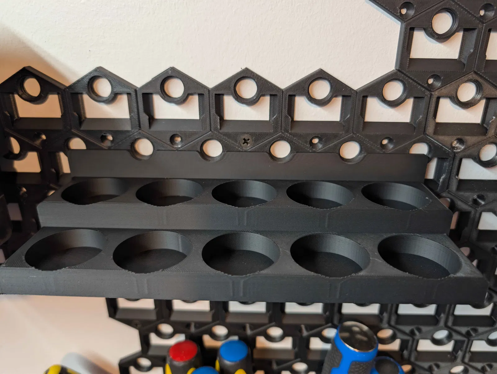 Kệ sơn thiết kế để dùng với hệ Goews, chứa được sơn Tamiya hoặc Mr. Color và các hũ có đường kính nhỏ hơn 36,5mm. Gợi ý thông số in: PLA, 2 walls, 10% support, cubic infill.