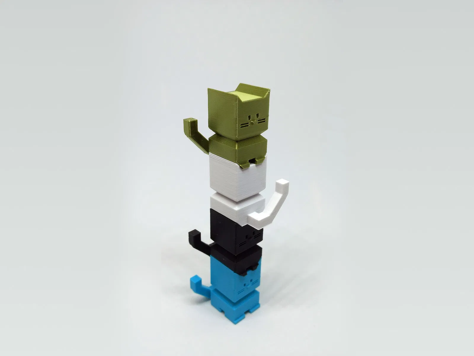 Mẫu mèo calibration có thể xếp chồng, giữ nguyên các kích thước calibration từ bản gốc. Có 3 bản: Stacktocat (tự xếp chồng), Adaptocat và Compatocat để tương thích khi đặt lên Cali Cat gốc.