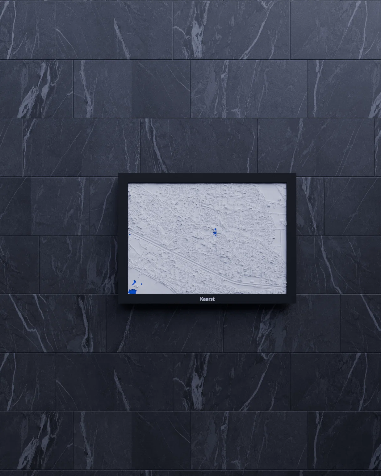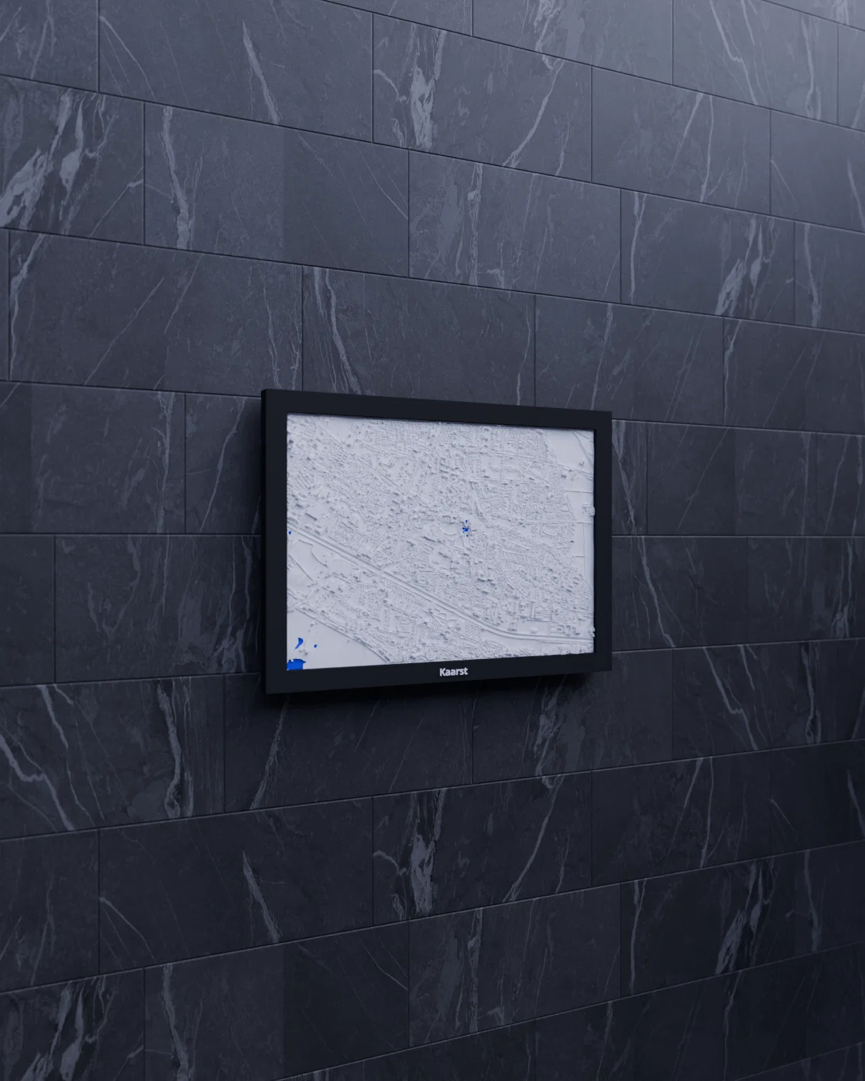 Bản thu nhỏ địa hình 3D của Kaarst (Đức), dựng từ dữ liệu địa lý để tái hiện terrain chân thực. Kích thước in 170.5 × 119.5 mm, có nhiều lựa chọn frame kèm lỗ treo; hỗ trợ in multicolor hoặc single color.