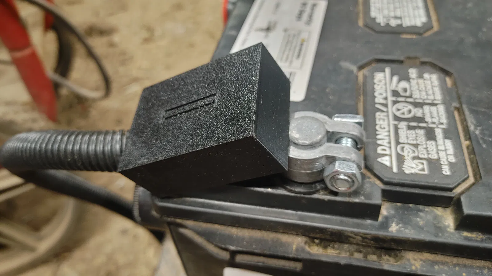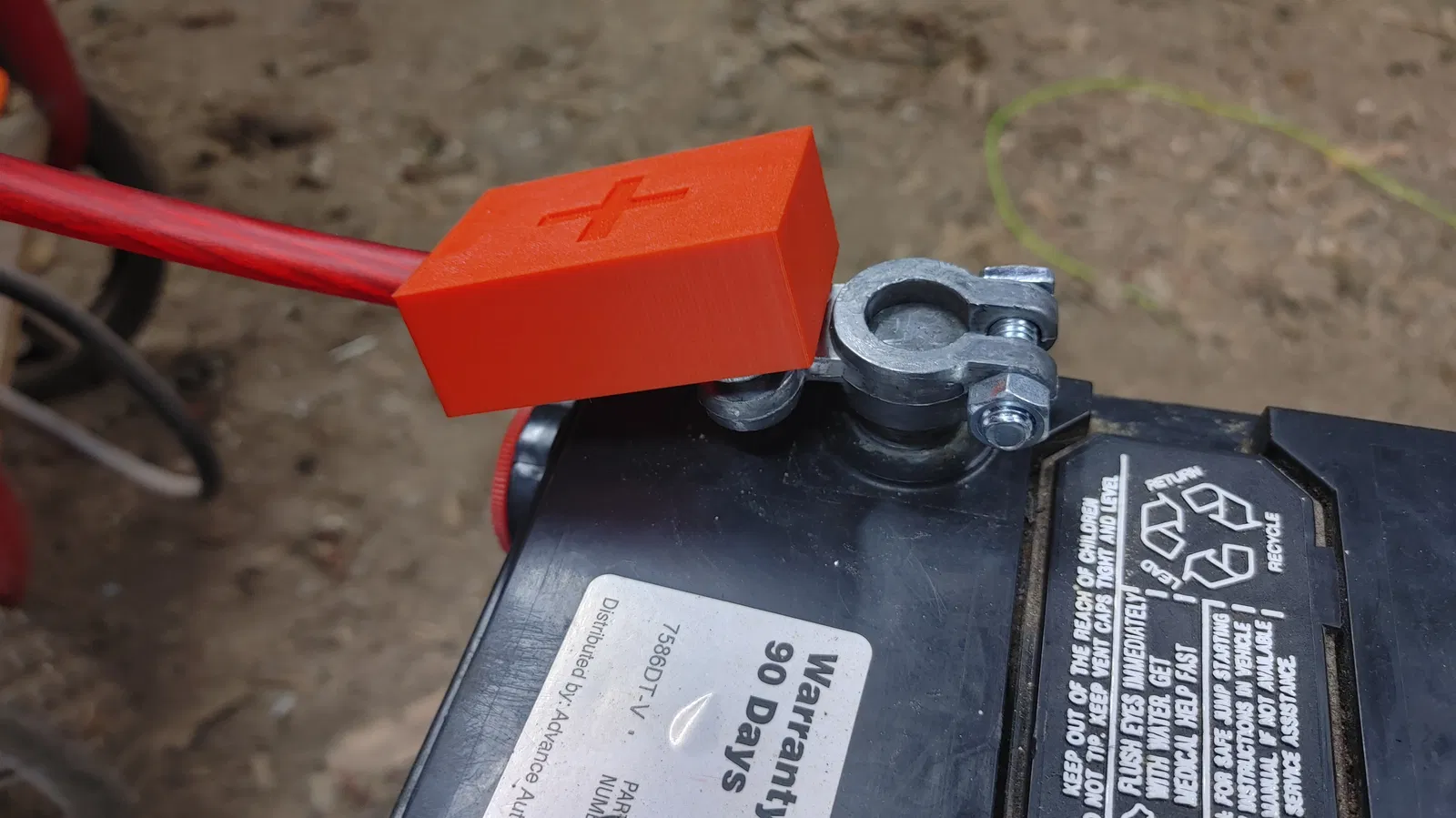 Nắp che đầu cáp bình ắc quy đơn giản, có phiên bản cho cả cực dương và cực âm. Phù hợp dùng quanh xưởng, trang trại hoặc gara để che chắn đầu cáp gọn gàng, an toàn hơn. Khuyên dùng TPU hoặc PETG.