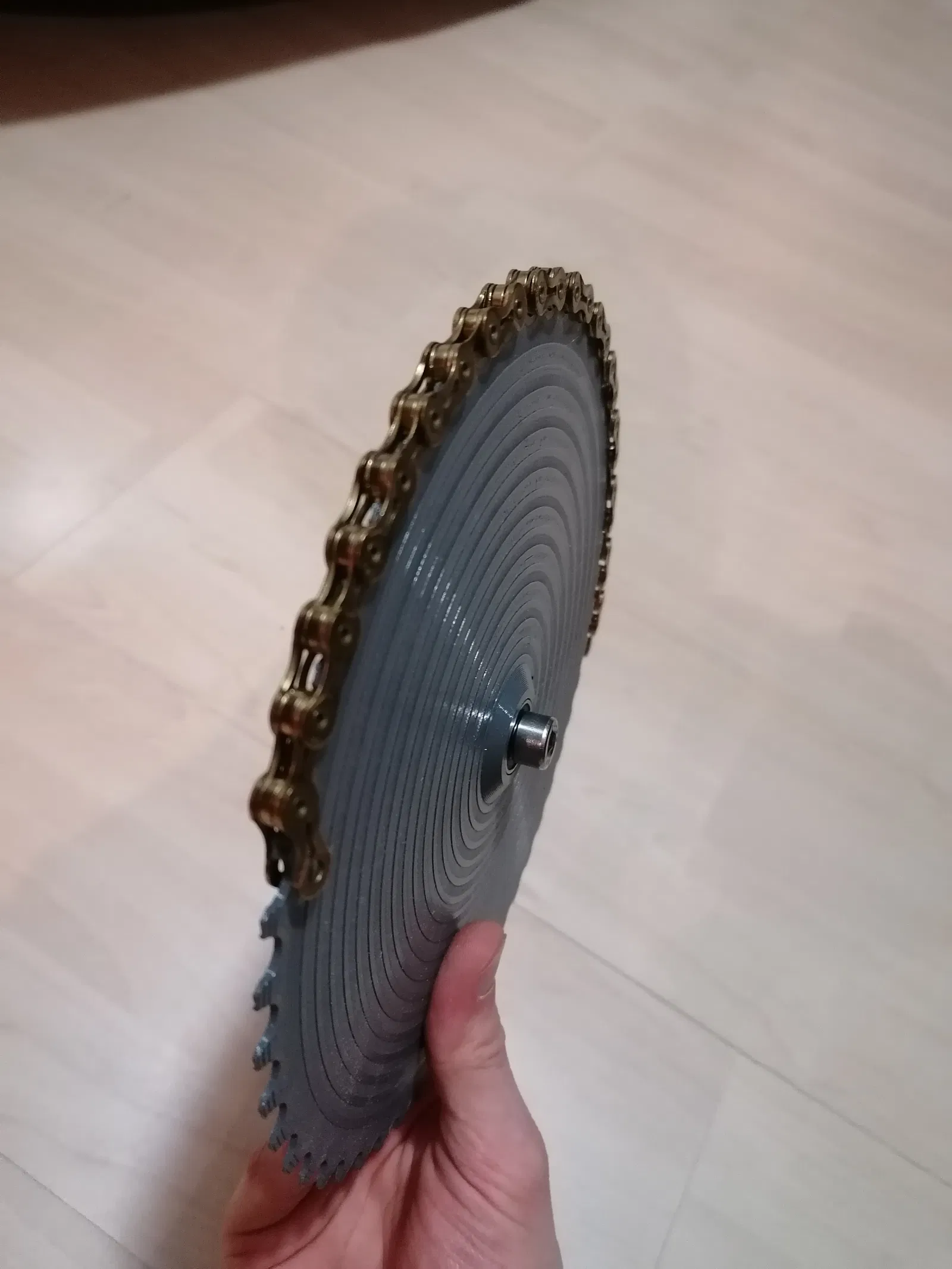 Mình có in thử vài cái idler bằng PLA và PETG để test, nhưng không khuyến nghị dùng cho các ứng dụng có tải (load). Tuy vậy, bạn có thể dùng file này để CNC phay một cái chainring bằng nhôm.