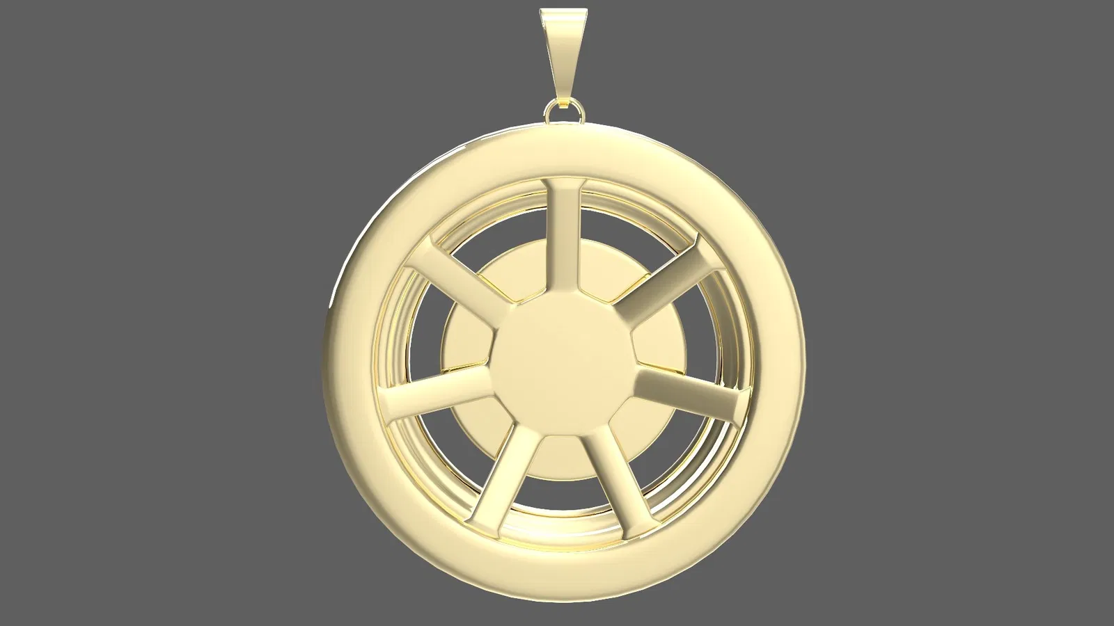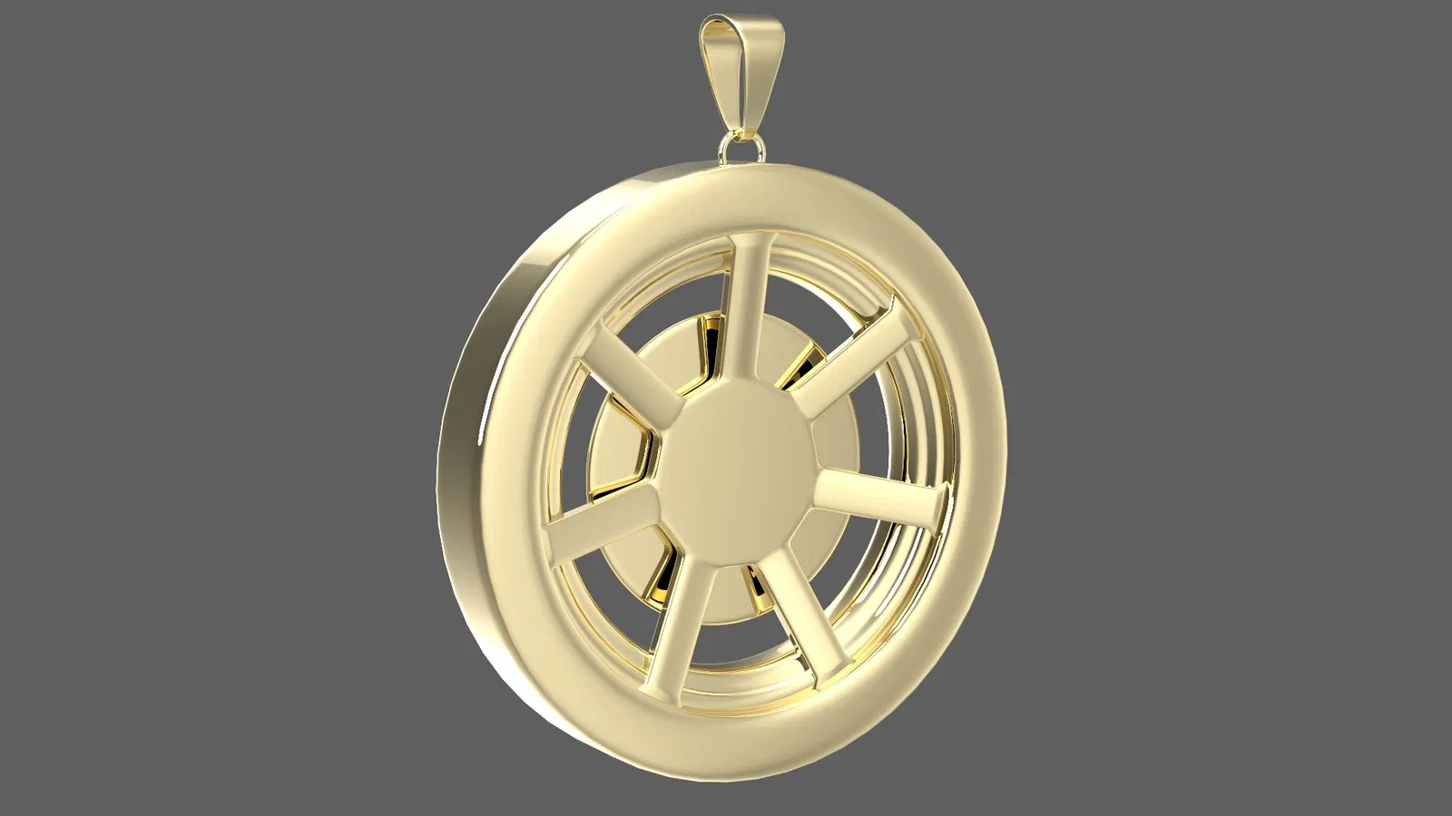 Mẫu 3D chất lượng của Simple Gold Wheel Pendant được tạo bằng 3ds Max 2024 và render bằng V-Ray. Cũng có sẵn định dạng file Blender. Sẵn sàng để 3D print.