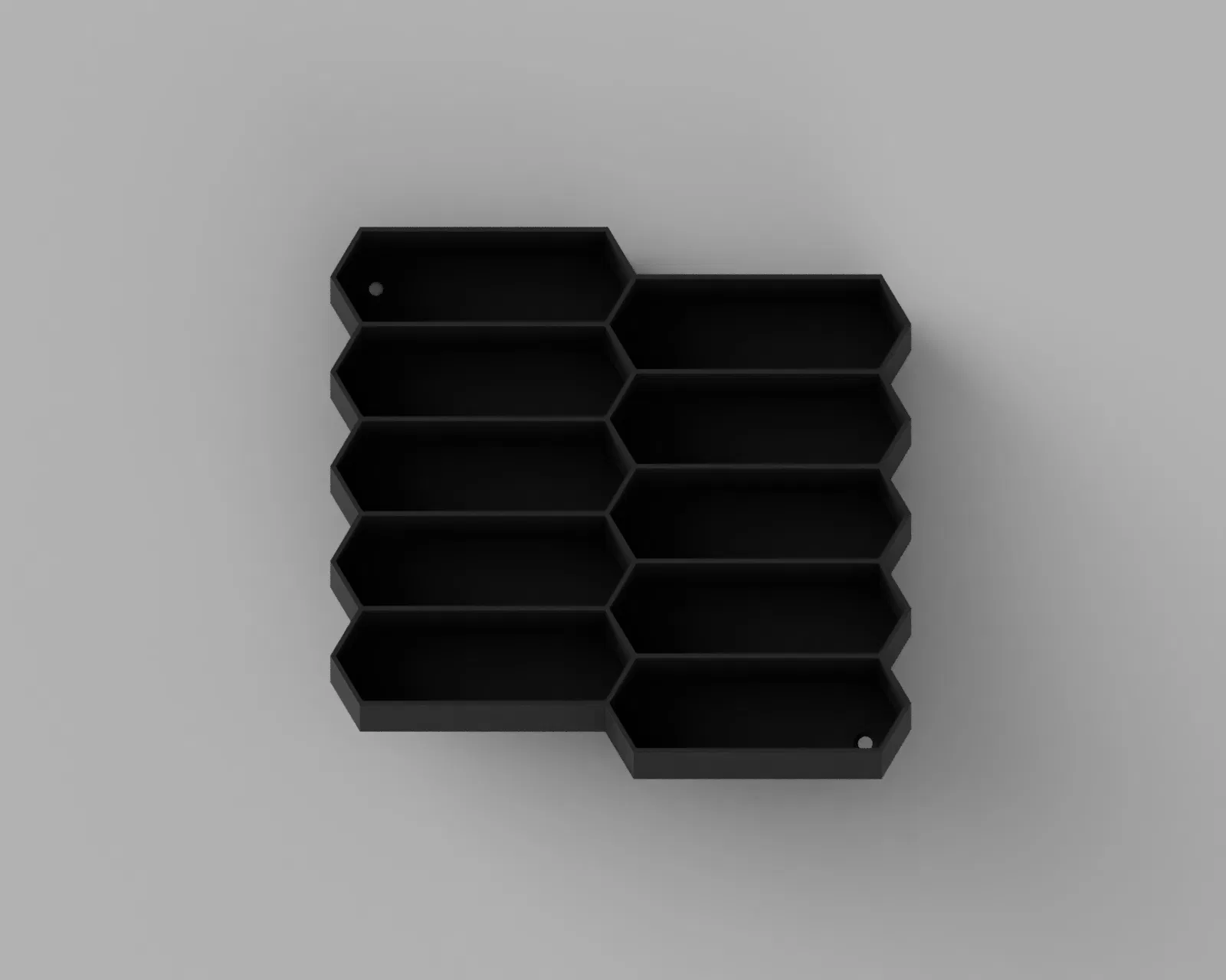 Kệ trưng bày Hot Wheels dạng lục giác gắn tường, là bản remix từ thiết kế có sẵn và được thêm back panels phía sau để tăng độ vững, nhìn gọn đẹp hơn. Lắp đặt bằng ốc vít M5, phù hợp trưng bày theo kiểu module.