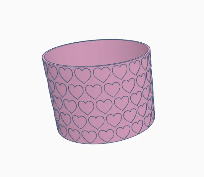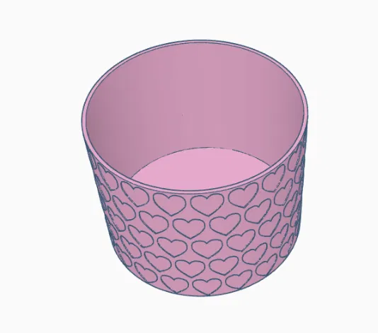 Chậu trang trí họa tiết trái tim cho Valentine. Vừa chậu cây 10cm, bản cao 8cm, in dễ không cần support. Hợp làm cachepot: đặt thẳng chậu mua sẵn vào. Quà tặng lãng mạn, bền đẹp hơn hoa.
