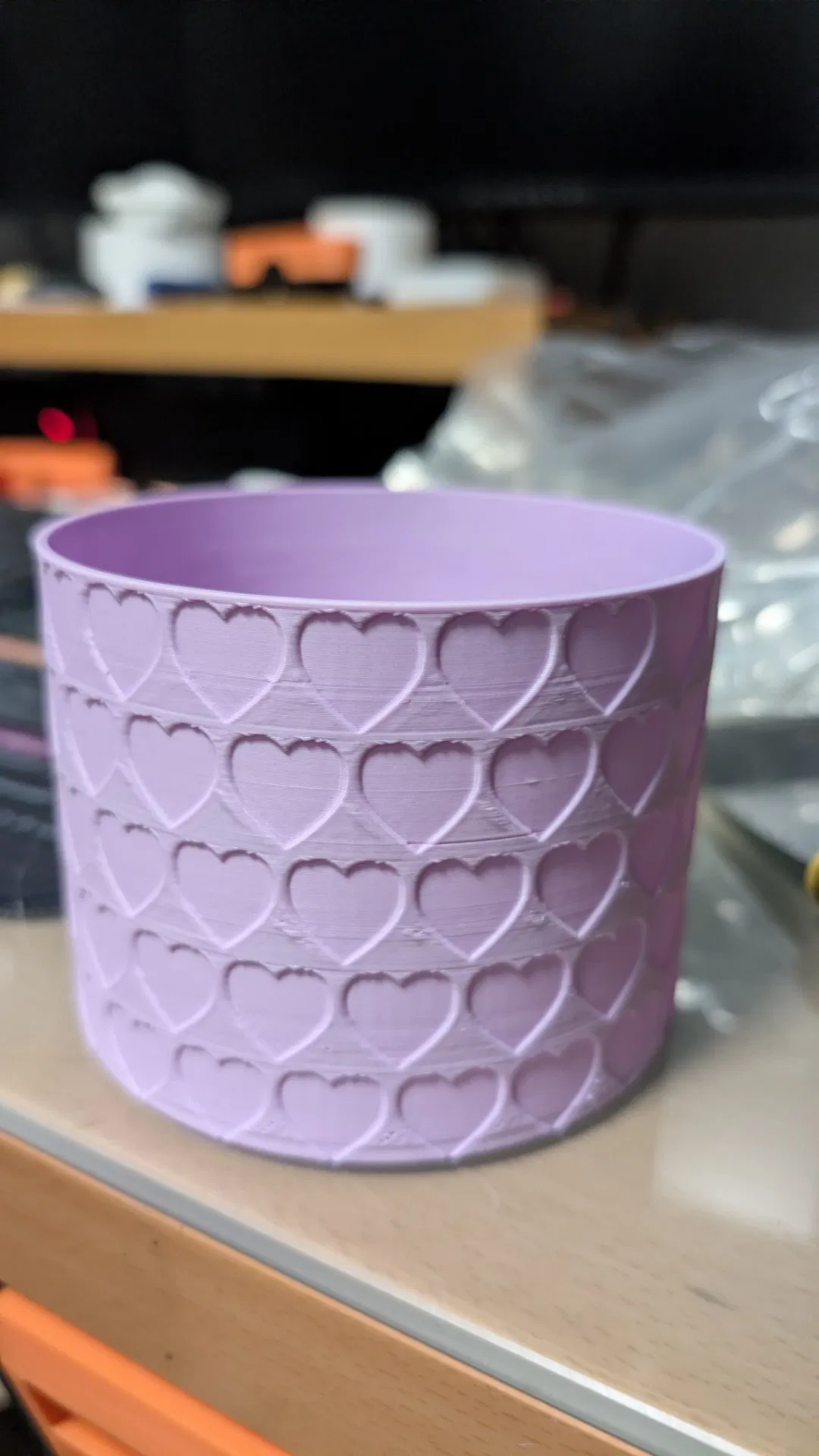 - Pro Tip: Silk PLA làm họa tiết tim nổi bật hơn, còn Matte PLA cho cảm giác modern kiểu gốm/ceramic.