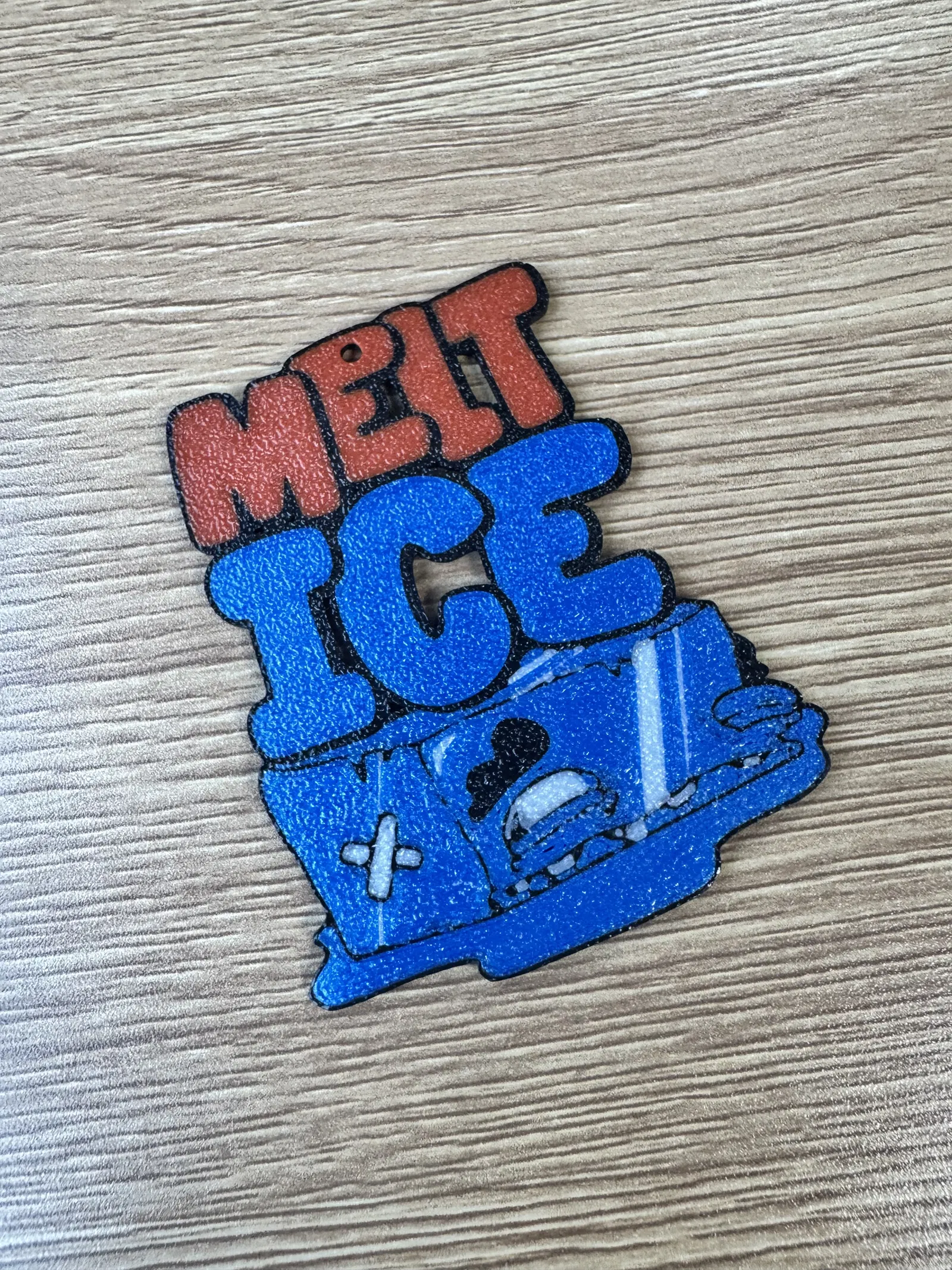 Móc khóa “Melt Ice” của Mike Bennett Art – một thiết kế sáng tạo để lan tỏa thông điệp “get ICE out of our streets”. Gợi ý in với PLA/HTPLA; dùng nozzle 0.4mm, nét mảnh cân nhắc 0.2mm.