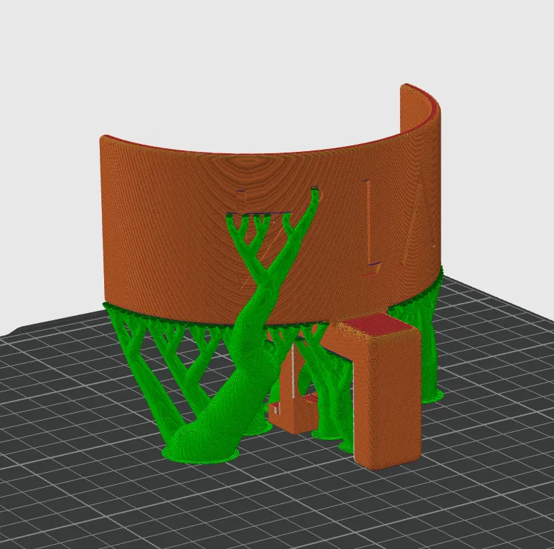 Mình in theo đúng hướng như hình, dùng support, infill 20%. Inland matte orange PLA.