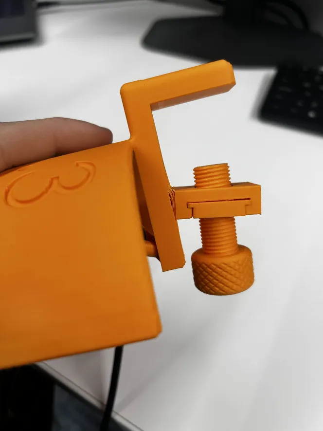 Phần kẹp dùng cơ cấu siết ren đơn giản kèm bản tì (pressure plate), nên lắp, tháo hoặc chỉnh cho nhiều độ dày mặt bàn khác nhau đều rất tiện. Tất cả chi tiết đều được thiết kế để 3D print dễ và lắp ráp đơn giản. Đã test với tai nghe over-ear tiêu chuẩn.