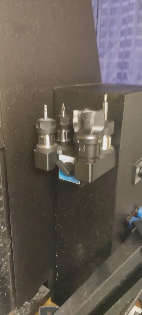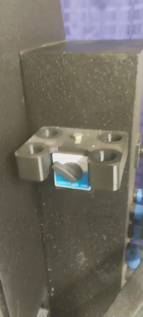 Giá giữ dụng cụ Tormach bằng nam châm. Dùng đế nam châm tiêu chuẩn thường thấy trên các chân đồng hồ so (dial indicator stand) của Harbor Freight. Tổng sức chứa là 4 dụng cụ và có thể gắn bằng nam châm theo cả cấu hình ngang lẫn dọc, với tải trọng tối đa 5 lbs.