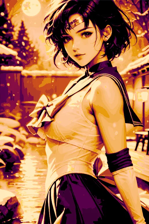 Hướng dẫn in mẫu Hueforge Ami Mizuno | Sailor Mercury: in 100% infill, layer height 0.08mm (base 0.16mm), kích thước 133.33x200mm, độ dày thực 2mm. Kèm danh sách 7 filament PLA+ và mốc đổi màu theo layer.