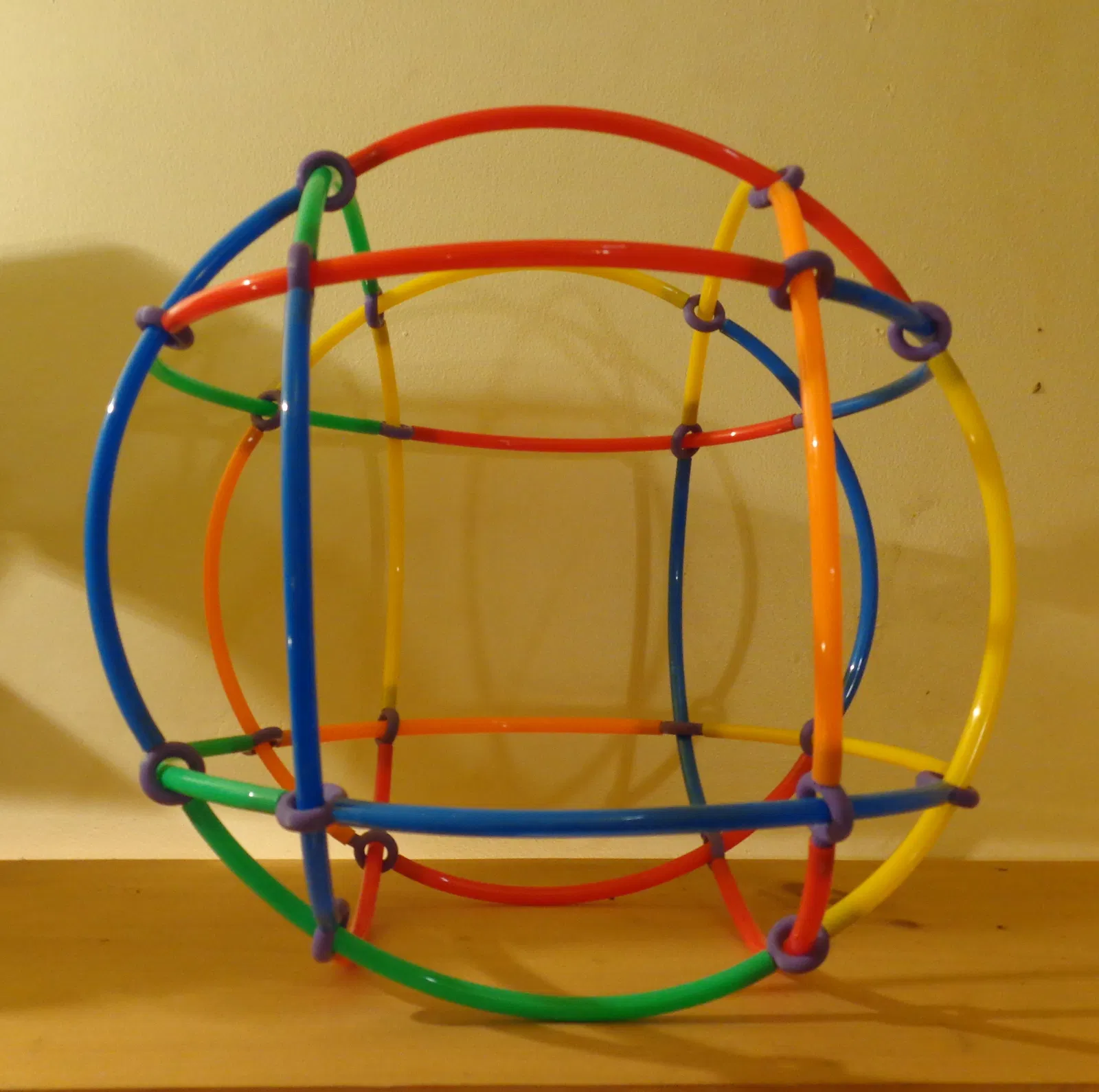 Có 4 linh kiện có thể dùng chung với ống hút dùng cho lắp ghép (construction straws). Để dựng được bất kỳ khối đa diện nào như hình minh hoạ, bạn chỉ cần vòng (ring) loại hai ngạnh. Những món còn lại là để bạn thử nghiệm, khám phá thêm.