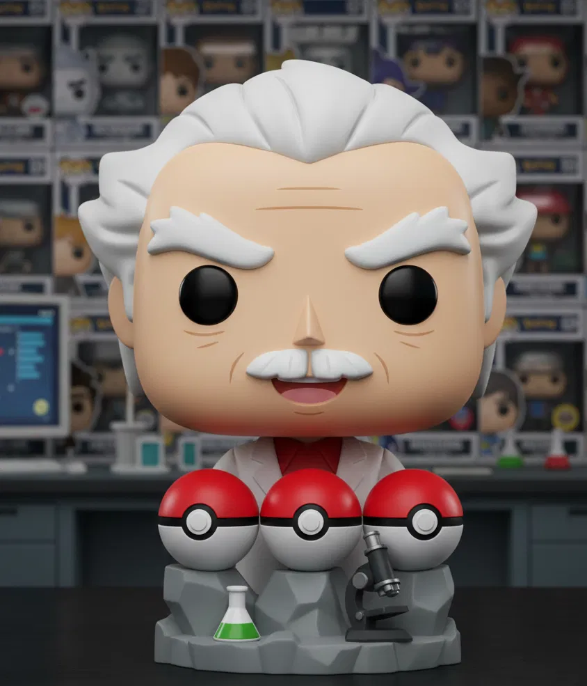 Mẫu 3D Giáo sư Oak theo phong cách Funko, phù hợp để in trưng bày cho fan Pokémon. Thiết kế “Choose your Pokémon” giúp bạn dễ chọn và phối cùng Pokémon yêu thích của mình.
