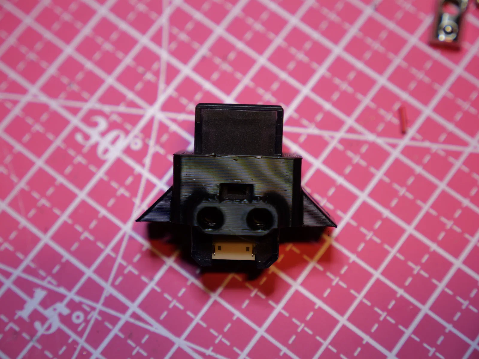 Thiết kế có tham khảo bản gốc, nhưng mình nới kích thước phần lắp eddy ra một chút vì bản gốc siết quá chặt. Giờ thì vừa khít đúng mức, và mình cũng thêm một lỗ để thao tác nút boot.