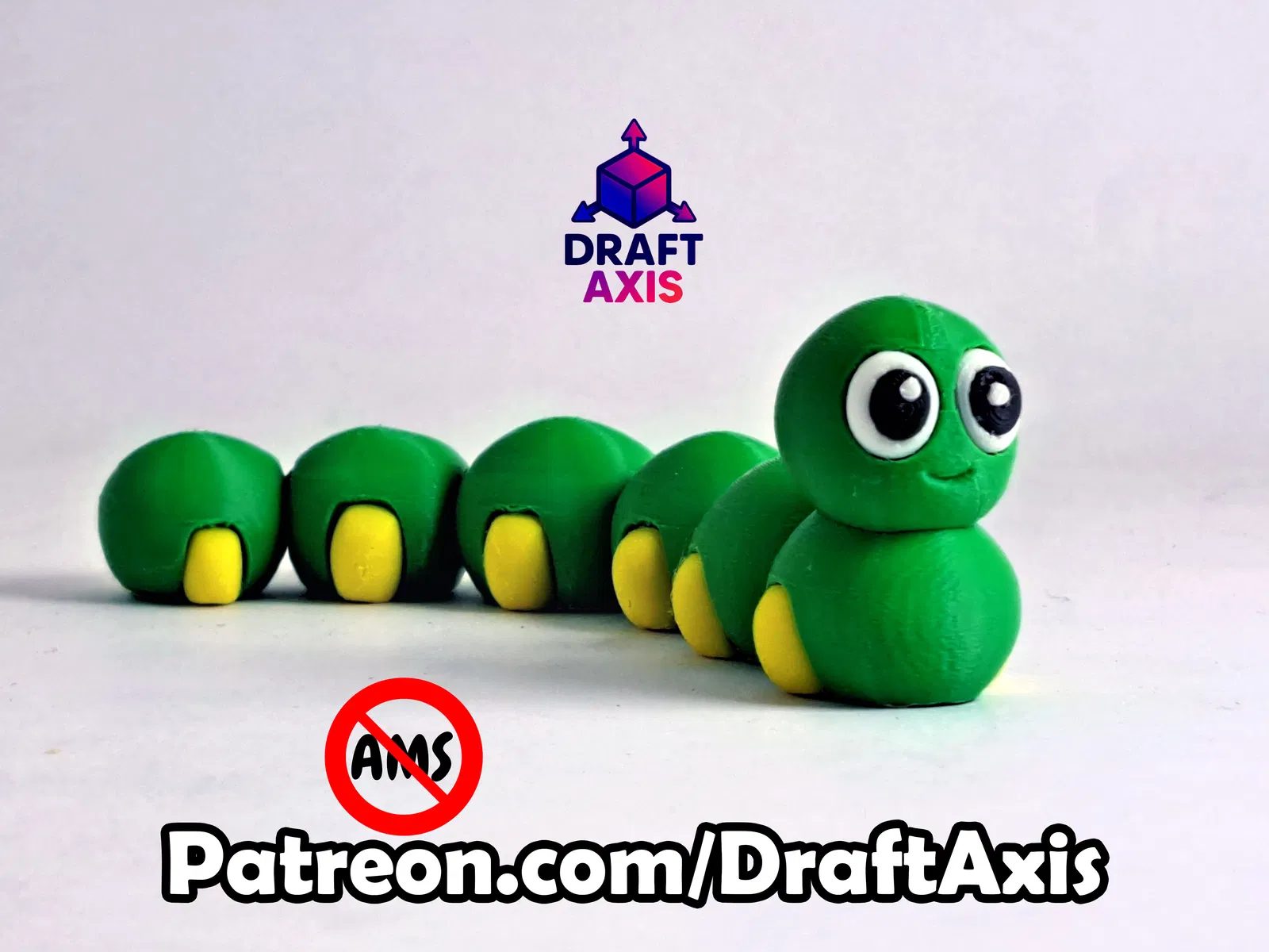 Mẫu Flexi Cute Worm siêu dễ thương, bẻ uốn đã tay và không cần AMS. Thiết kế multi-color nhưng mỗi màu in tách rời nên ai cũng in được. Bản multi-color độc quyền cho thành viên Patreon của DraftAxis.