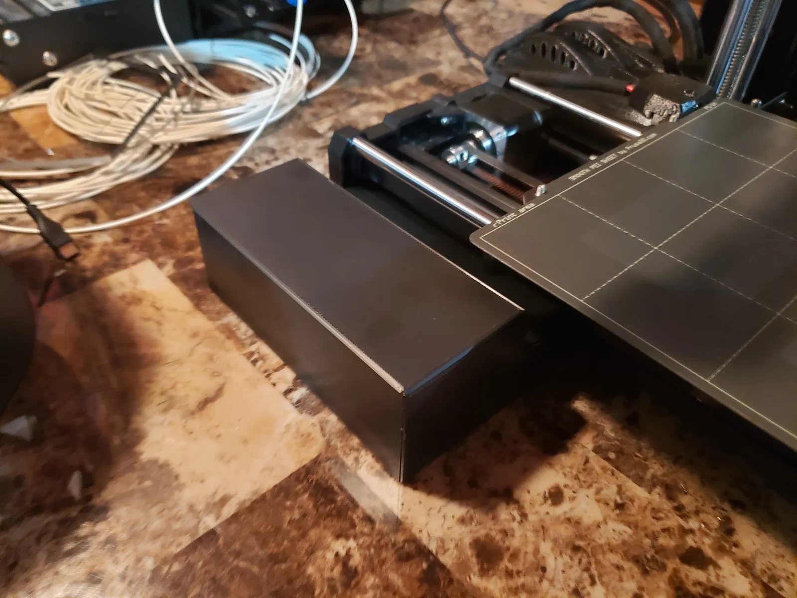 Nắp đậy cho thùng rác sợi in, thiết kế để móc vào các thanh nhôm (aluminum extrusions) của Prusa Mini+. Giúp thùng dễ xếp chồng, gọn gàng và nhìn đẹp hơn khi đặt cạnh máy.