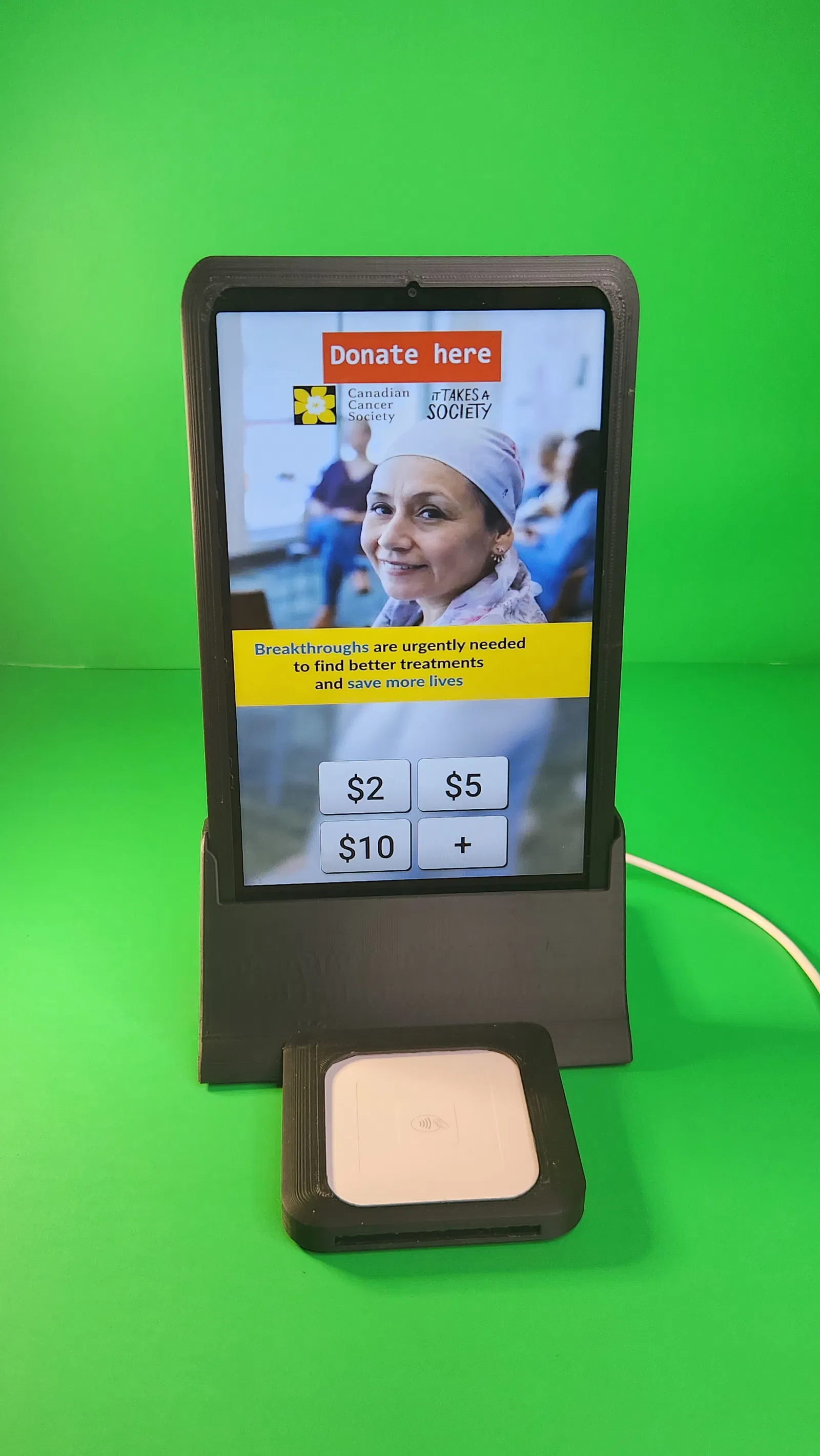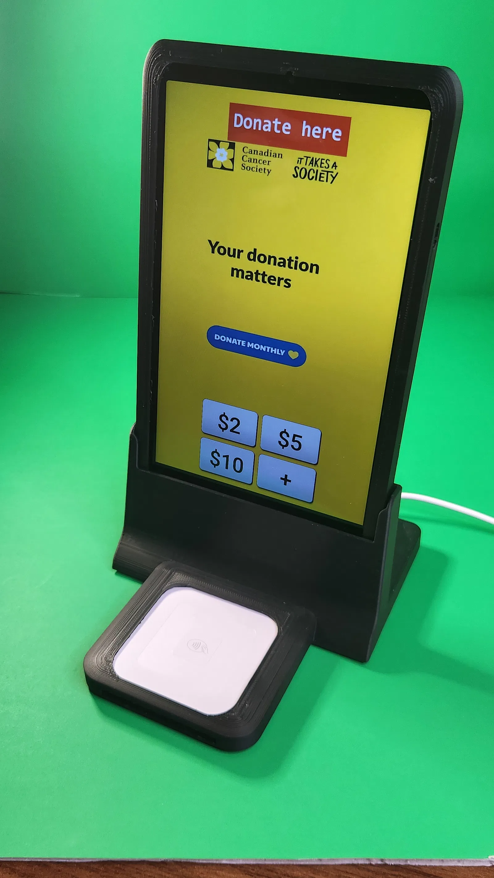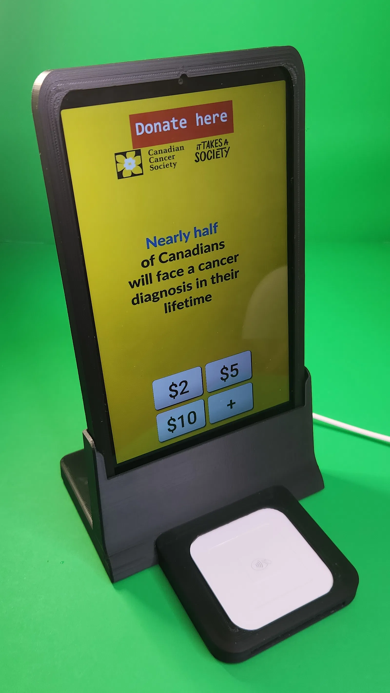 Vỏ (casing) để làm một trạm quyên góp (donation terminal) dùng Samsung Tab A9 8.4  và một Square reader Bluetooth (https://amzn.to/4qqucDH). Mẫu này dùng phần mềm TapandGive cho Android, xem thêm chi tiết tại tapandgive.net