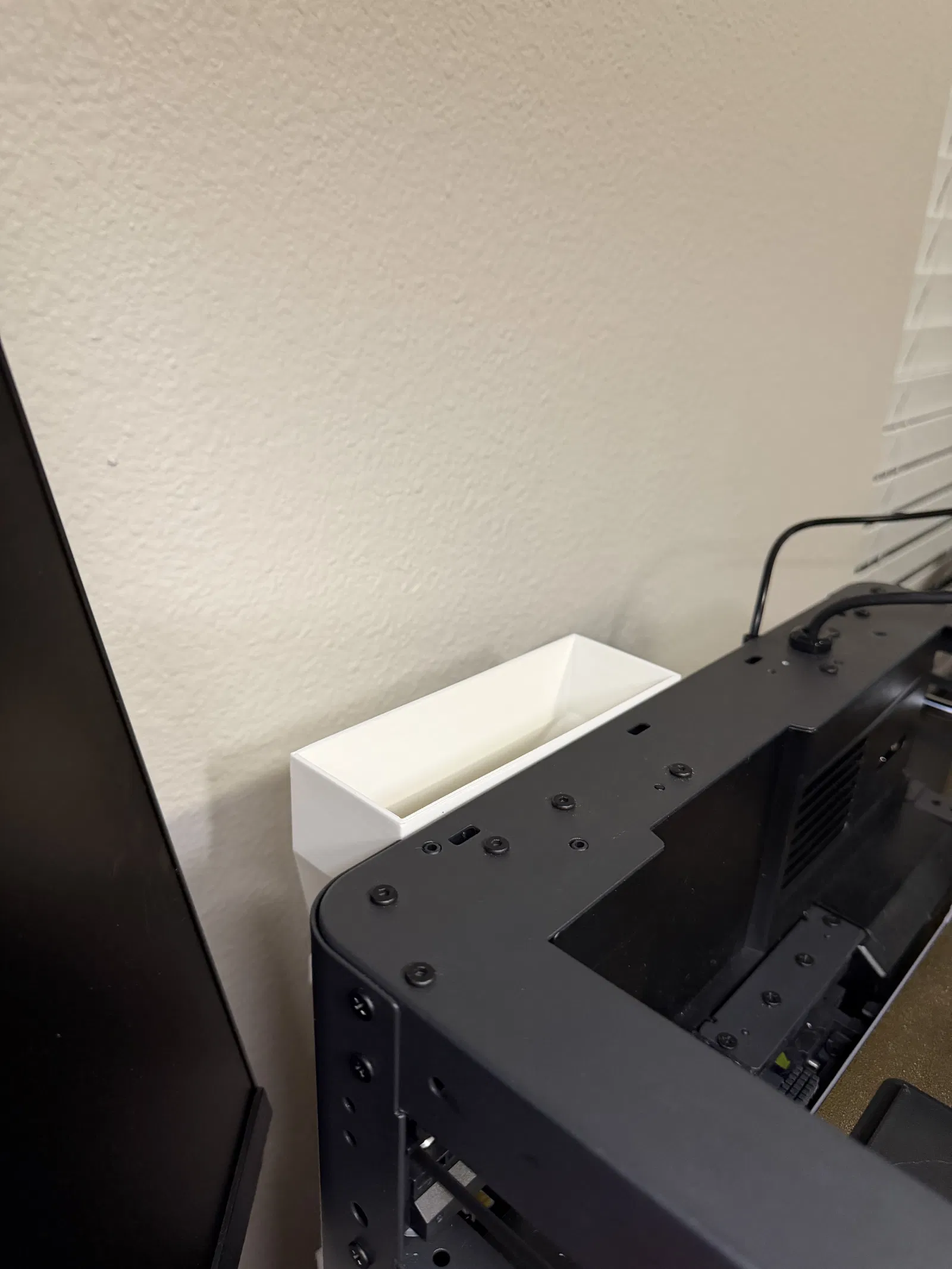 Mình làm một mẫu poop shoot cho AM5X để phần rác thải rơi thẳng xuống một cái hộp đặt dưới bàn. Mình cũng làm thêm một món gắn kèm giúp rác thải rơi vào một cái funnel nằm phẳng, ôm sát với mặt trên của AM5X. Mình nghĩ ra mẫu này vì mình hay để một thùng carton lớn dưới bàn làm việc để hứng rác thải, nhưng cũng muốn tiện tay bỏ support và các mảnh PLA nhỏ khác vào chung thùng đó mà không cần kéo thùng ra khỏi gầm bàn. Phần ống dài của shoot là dạng modular và chia theo từng đoạn 100mm để chỉnh chiều cao của shoot. Mình khuyên dùng thêm một chút superglue để dán cố định cho chắc hết các phần lại với nhau.