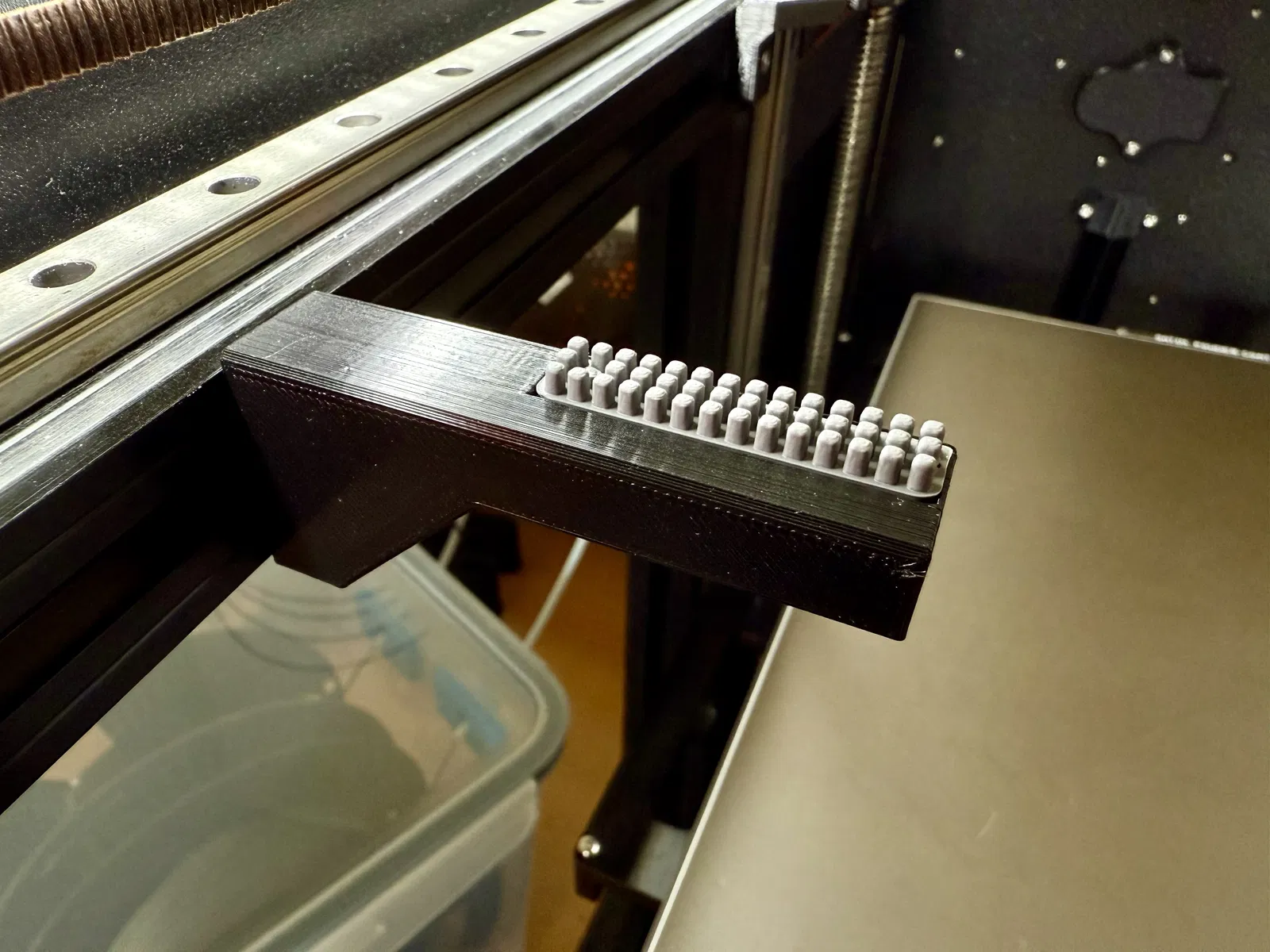 Bộ gạt silicone lau nozzle cho Prusa XL, dùng Bambu Lab A1 Silicone Brush (không phải Mini). Lắp cố định lên frame, hỗ trợ wipe sau khi in hoặc giữa các lần đổi màu/đổi toolhead. Có bản M3/M4, lắp trái hoặc phải.