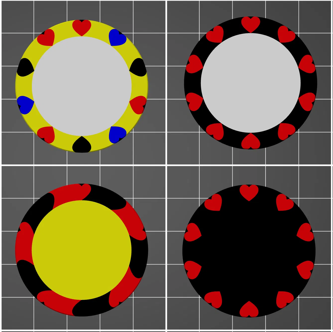 Maker Chip Blank Hearts 10P là thiết kế Hearts 10 điểm. File 3MF nhiều part giúp đổi màu dễ dàng, phù hợp in multi color với nozzle 0.25. Lưu ý chỉnh Material và purging volume theo màu và máy.