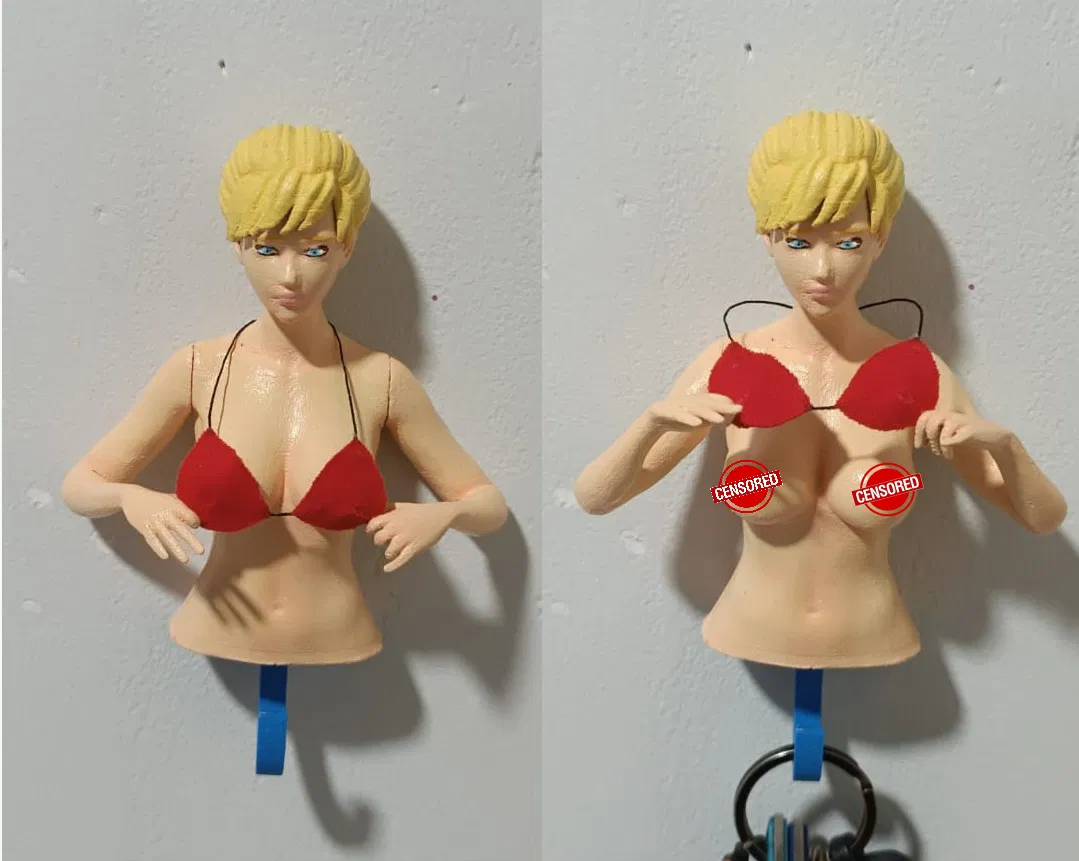 Khi bạn treo chìa khóa lên, cơ cấu bên trong sẽ được kích hoạt, tạo ra chuyển động vui nhộn nhờ một trục quay và hệ đối trọng (không cần điện). Bạn có thể thêm một viên đá nhỏ vào khoang đối trọng, ngay trong phần trục, để cải thiện chuyển động hồi về.