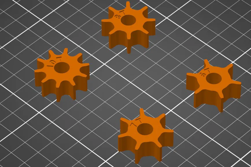 Bộ bánh răng thay thế cho bag taping machine: bản gốc 10 răng kèm các phiên bản 8, 7 và 6 răng để cho vật lớn đi qua máy dễ hơn. Phù hợp trục 8.5mm và có thể chỉnh để hợp trục khác.