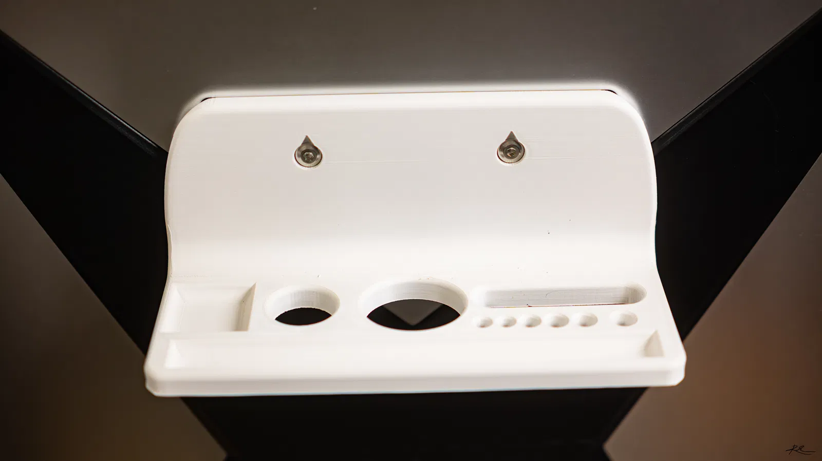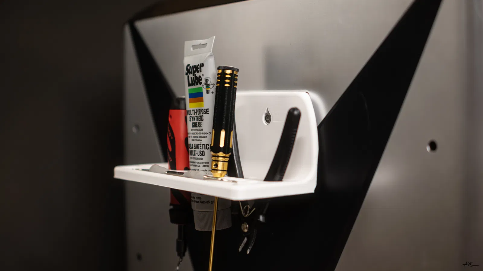 Đây là một khay đựng dụng cụ (tool tray) được thiết kế cho Qidi X-Max 3. Điểm đáng chú ý là mẫu này bắt vít bằng ốc máy M5 nên gắn rất chắc.