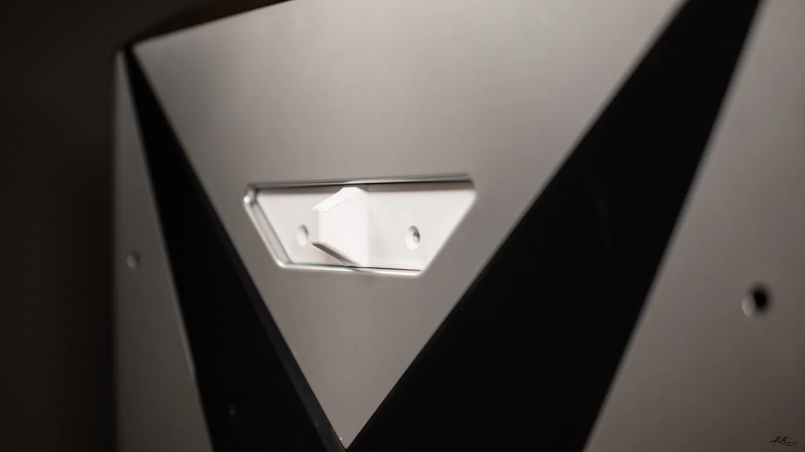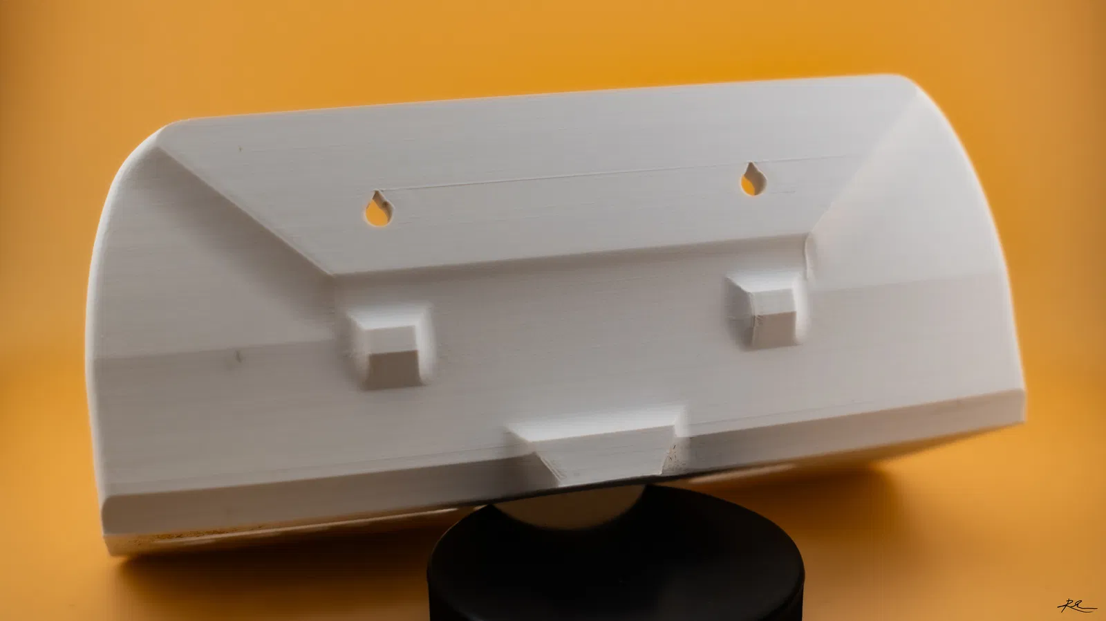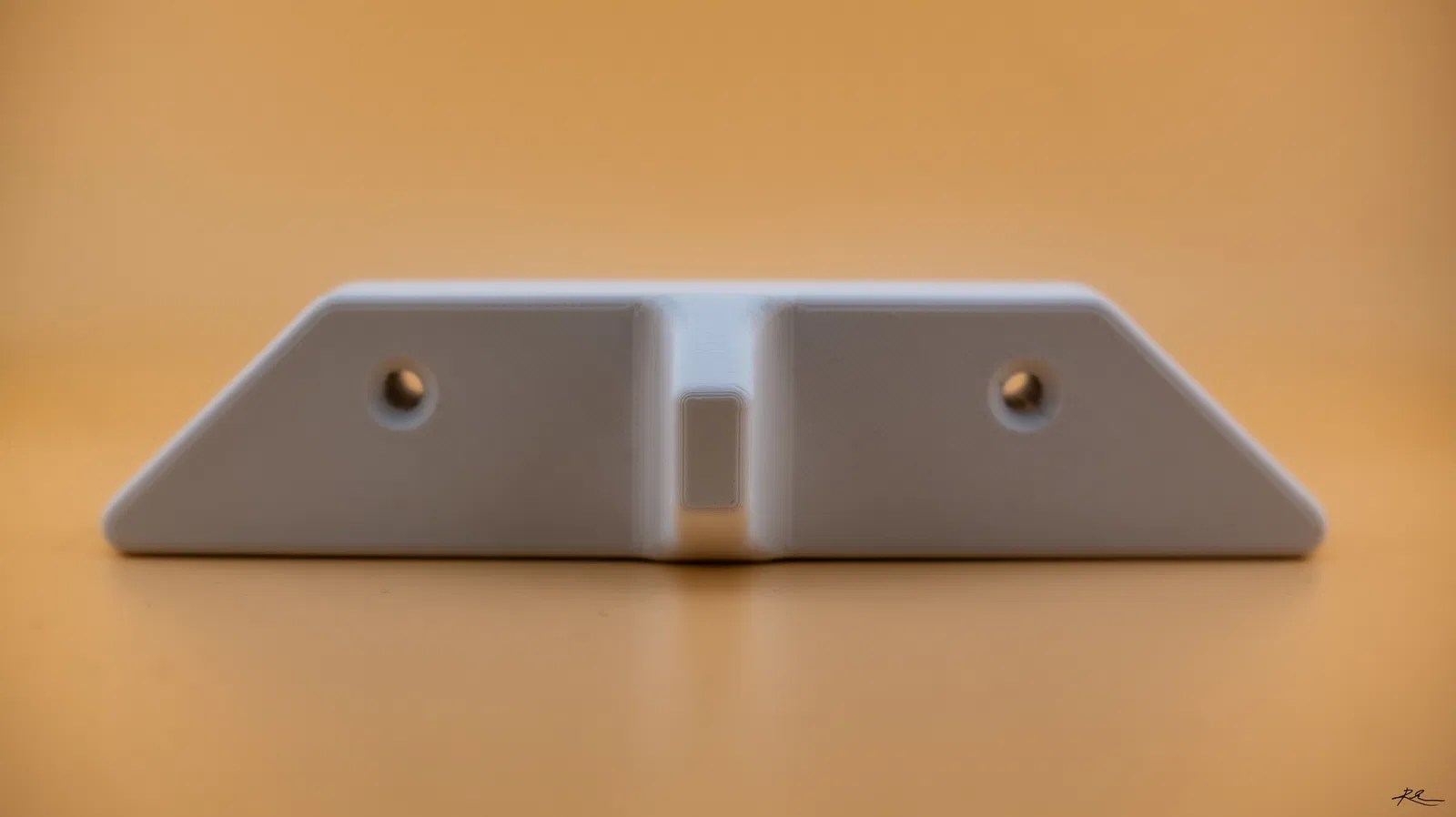 2. Tray Mounting Insert - Model này phẳng một mặt và mặt còn lại được vát nhẹ (chamfer). Nó có 2 lỗ và bạn sẽ cần lắp heat insert ren M5 vào đó. Bạn sẽ cần tổng cộng 4 insert ren M5 vì mỗi lỗ sẽ lắp 2 cái từ hai phía (một bộ để bắt ốc từ phía trong máy nhằm cố định khối này vào handle inset, bộ còn lại để bắt ốc gắn khay tool tray). KHÔNG ĐƯỢC ĐÚT KHỐI NÀY VÀO HANDLE INSET KHI CHƯA LẮP INSERT REN SẴN!! (Sẽ rất khó lấy ra, và nhiều khả năng bạn phải dùng keo CA dán một thứ gì đó vào mặt ngoài rồi kéo ra. Nếu đã có heat insert trong khối, bạn chỉ cần vặn vài con ốc vào để kéo nó ra.)