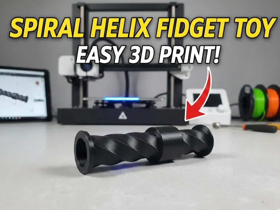 Spiral Helix Fidget cho chuyển động cơ khí mượt rượt, giúp xả stress và tăng tập trung. Không cần support, in nhanh dưới 1 giờ (tùy setting). Khuyến nghị PLA, layer 0.20mm, infill 15% Gyroid.