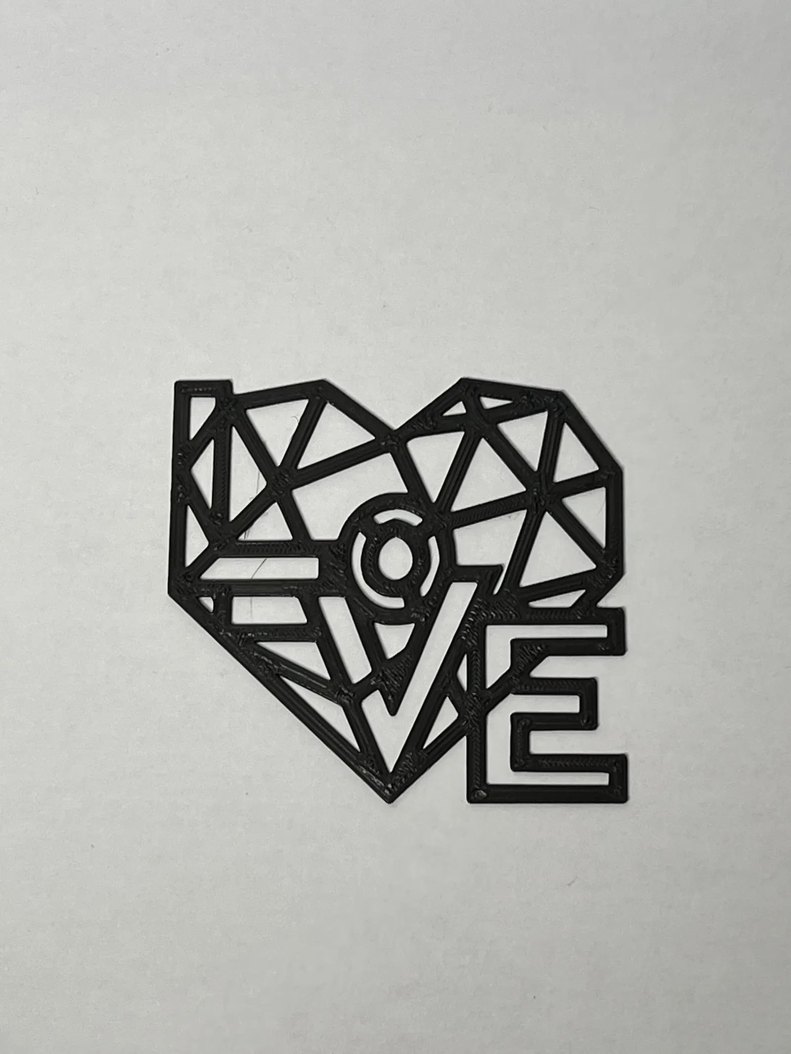 Mẫu Wall Art “Love Wall Art #5” dạng 2D để trang trí tường, hợp chủ đề tình yêu/Valentine. Lưu ý: thiết kế rất mỏng nên việc scale xuống nhỏ có thể khó và dễ hỏng—hãy cân nhắc trước khi in.