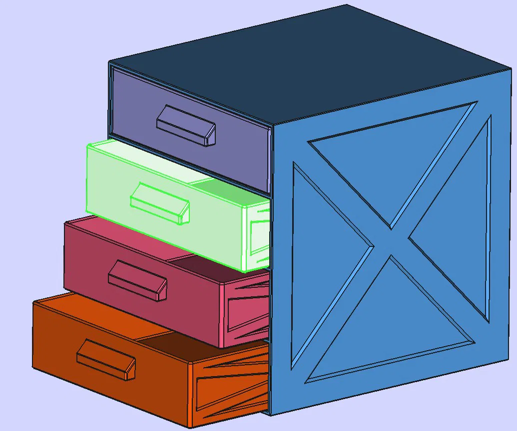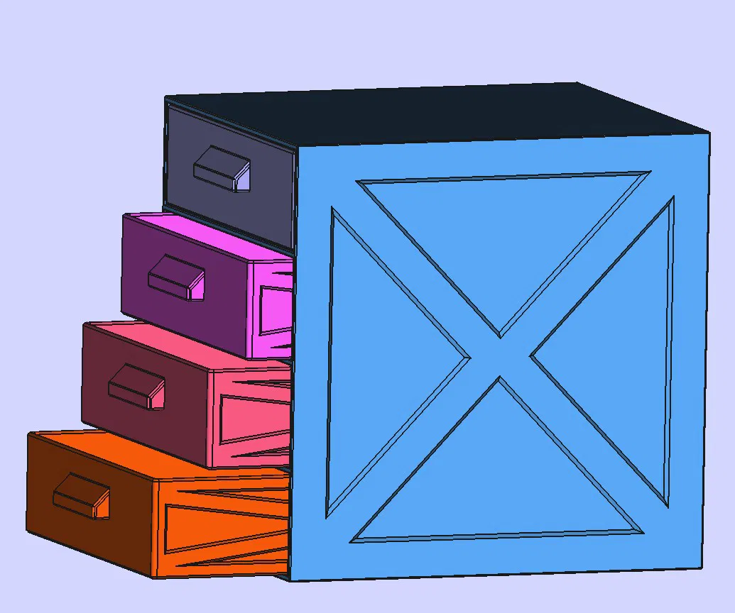 Tủ ngăn kéo (drawer unit) với 4 ngăn, kích thước: rộng 300 mm, cao 350 mm, sâu 350 mm.