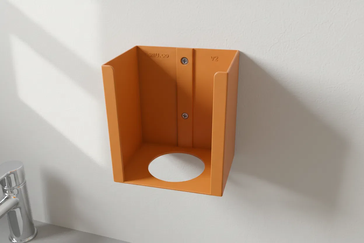 Mẫu giá treo hộp khăn giấy gắn tường dành cho hộp khăn giấy loại lớn, giúp tiết kiệm diện tích và giữ hộp cố định gọn gàng. Phù hợp lắp trong nhà tắm, bếp hoặc khu vực làm việc.