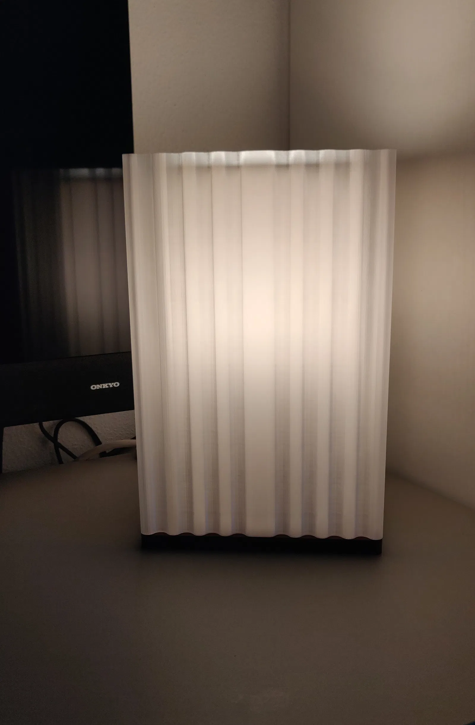 Mẫu đèn Art Deco với phần đế được chỉnh sửa, bổ sung 2 insert kèm nắp để nhét vật nặng (weights) loại dùng cân bằng bánh xe ô tô, giúp tăng độ ổn định và chống lắc khi đặt trên bàn.