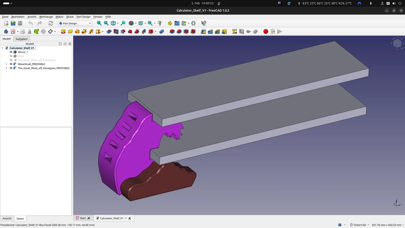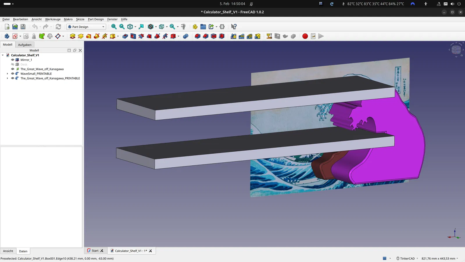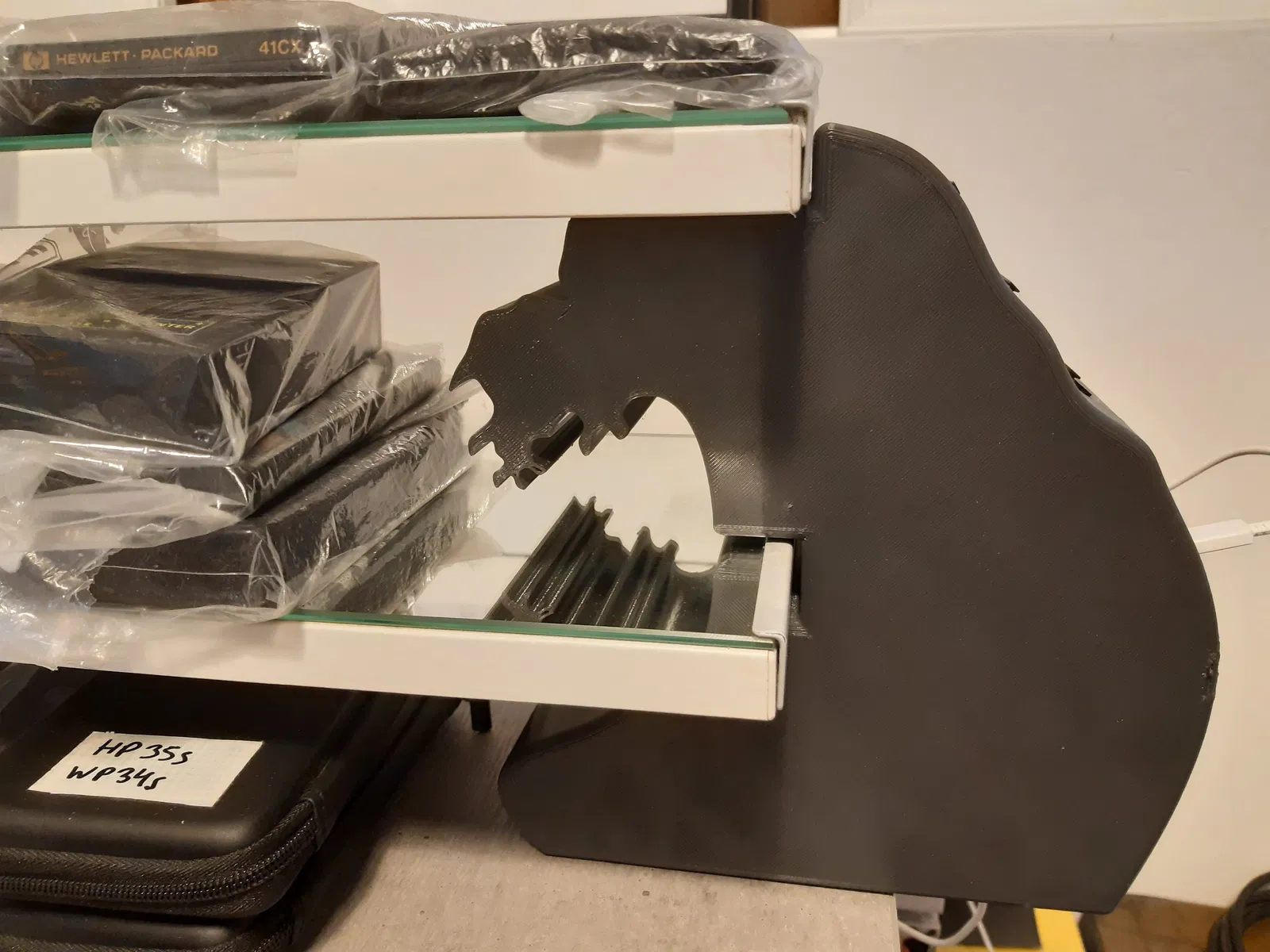 Kệ máy tính lấy cảm hứng từ tranh khắc gỗ “The Great Wave Off Kanagawa”, có khoảng hở 22mm và 85mm, mặt sau có ô cho module HP41c/TULIP4041. Đi kèm file FreeCAD để bạn tự chỉnh sửa theo ý.