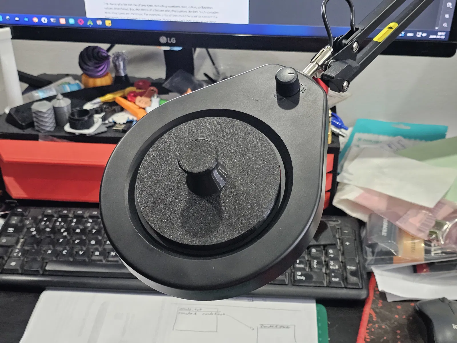 Mẫu nắp che bụi cho đèn kính lúp, giúp hạn chế bụi bám lên lens và giảm công lau chùi trước khi dùng. Thiết kế đơn giản, in dễ với PETG/PLA, phù hợp kính lúp đường kính 103 mm.