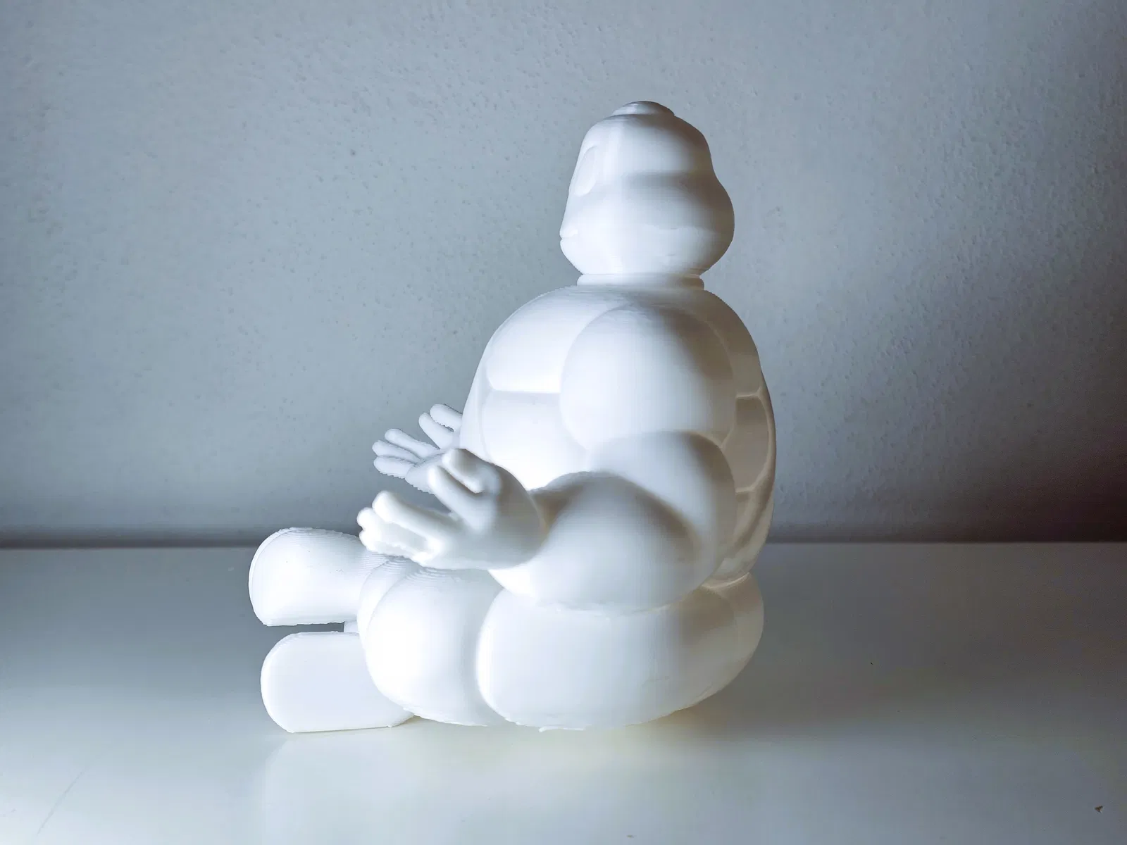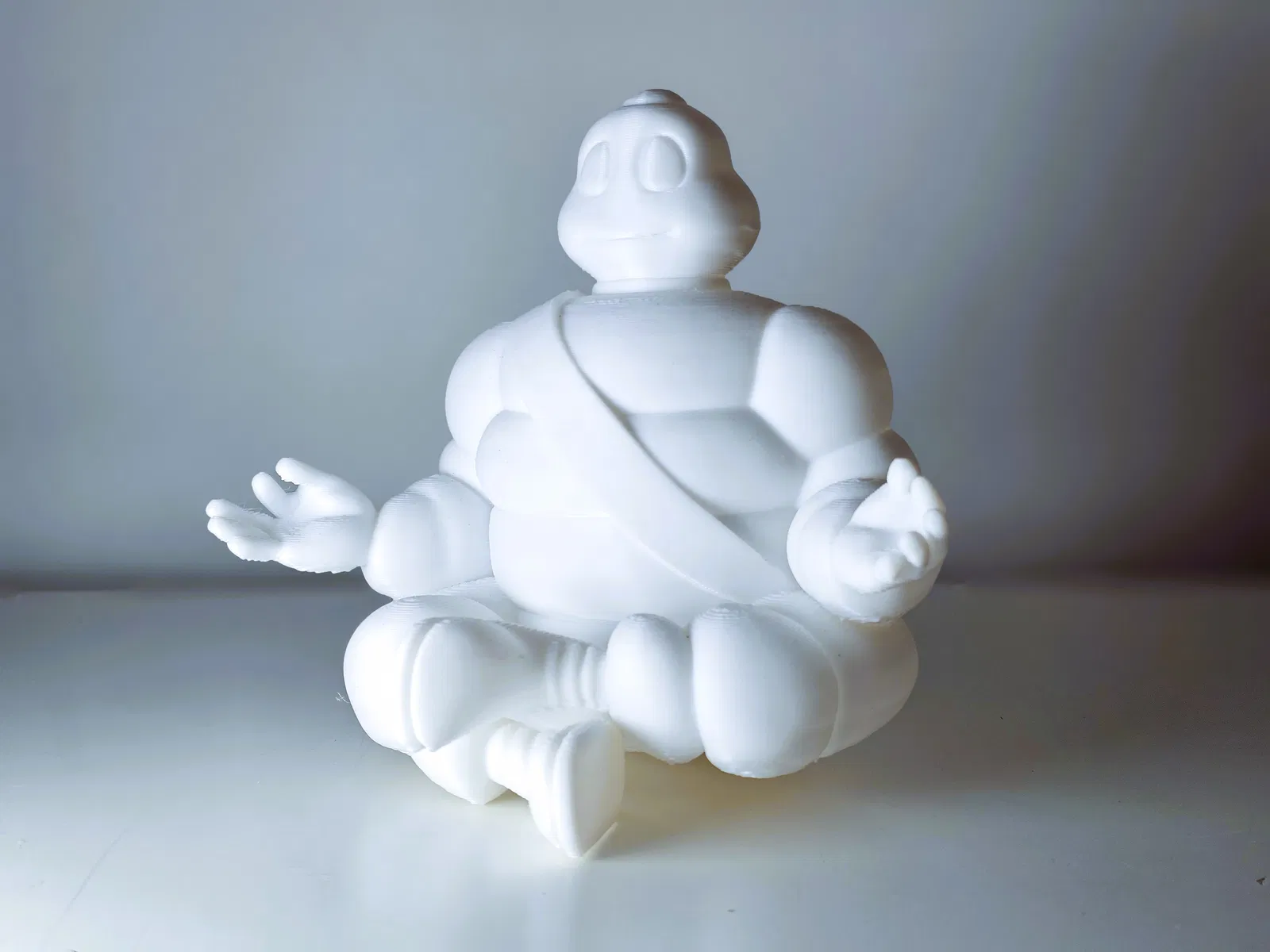 Mô hình Michelin’s Bibendum trong tư thế ngồi thiền/yoga, đúng kiểu mascot “chill”. Phù hợp để in trưng bày trên bàn làm việc hoặc góc decor; tải về và in là có ngay một tượng dễ thương.
