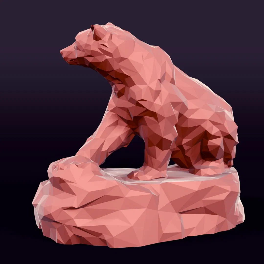 Tượng Gấu Polygonal (Low Poly) – Mẫu 3D Sẵn Sàng In