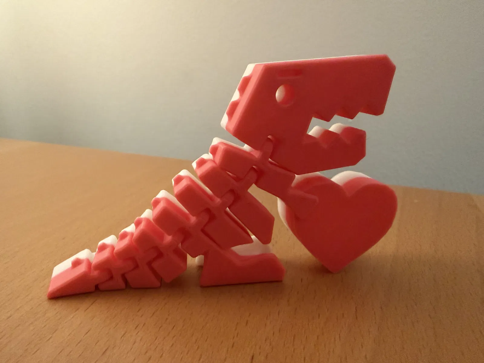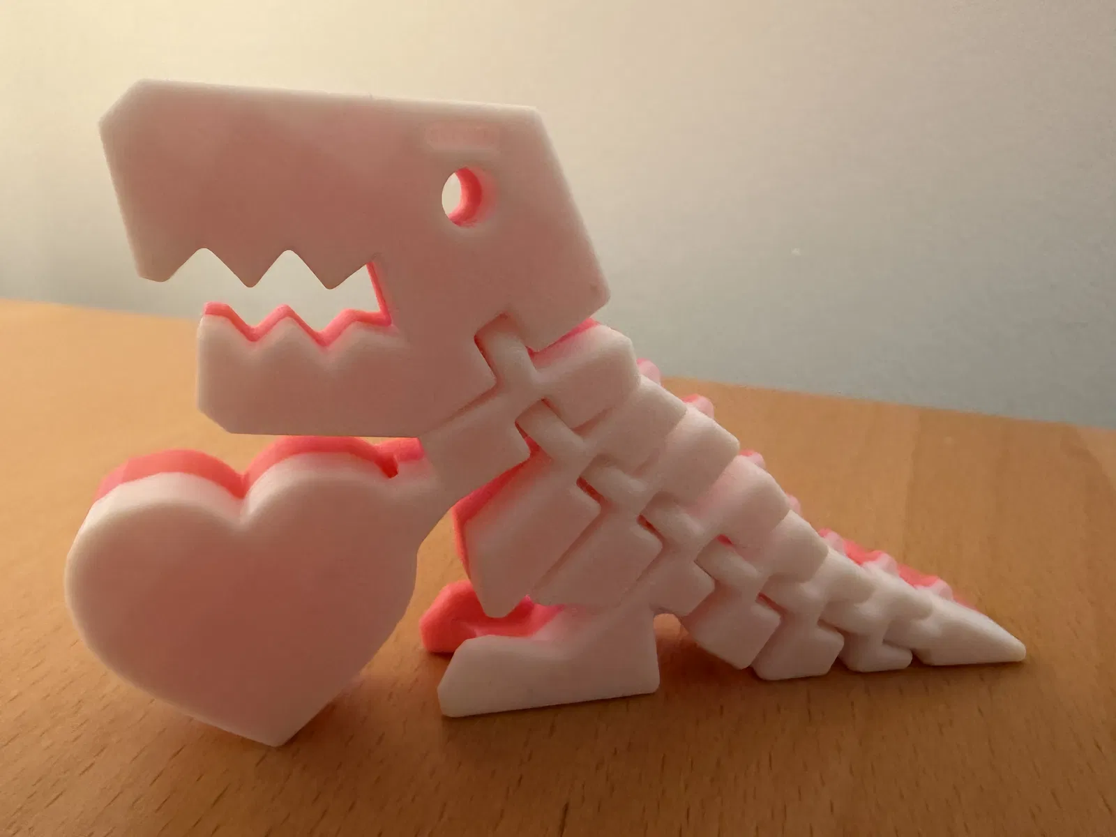 Mình thêm một trái tim để khủng long FlexiRex cầm cho dịp Valentine. Trái tim của dino được thiết kế nằm phẳng trên build plate nên in ra rất sạch, không cần supports.