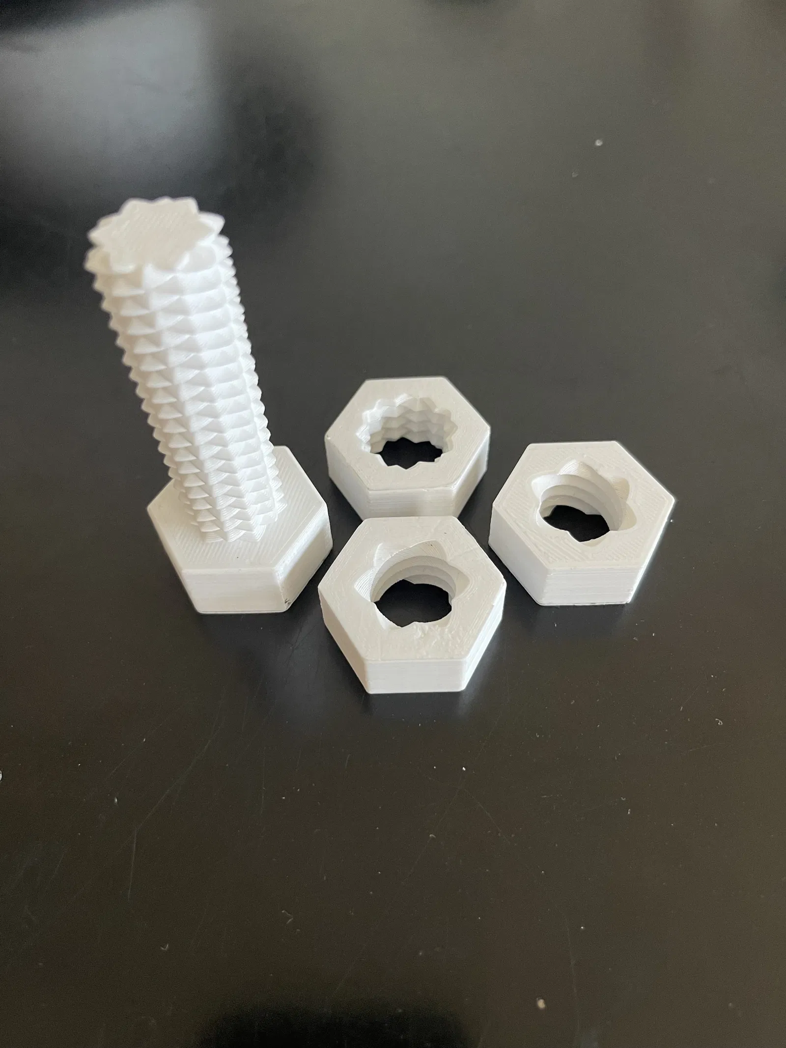 Mẫu này cho phép bạn xoay các đai ốc theo nhiều hướng khác nhau ngay trên cùng một con bu lông. Đây là một món đồ chơi fidget rất vui và đã tay.