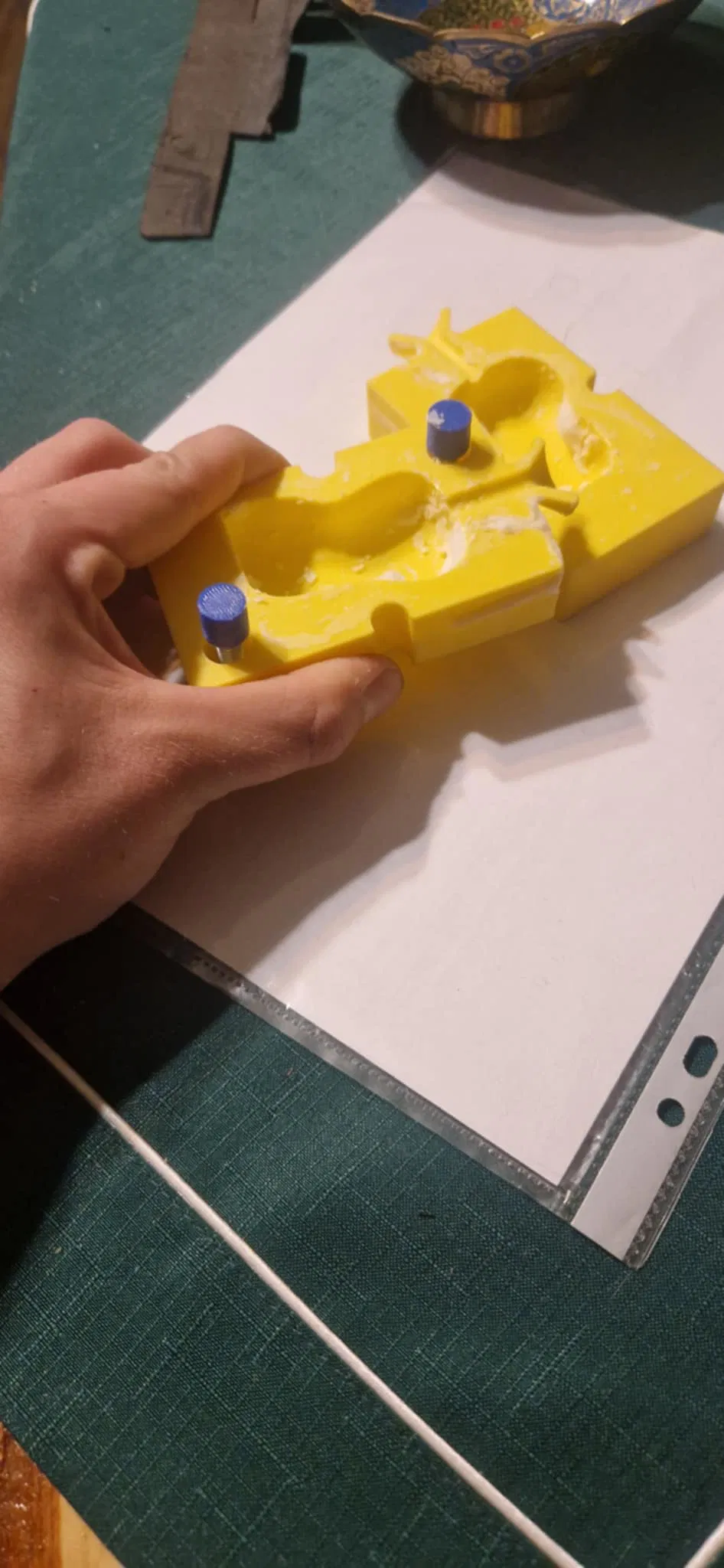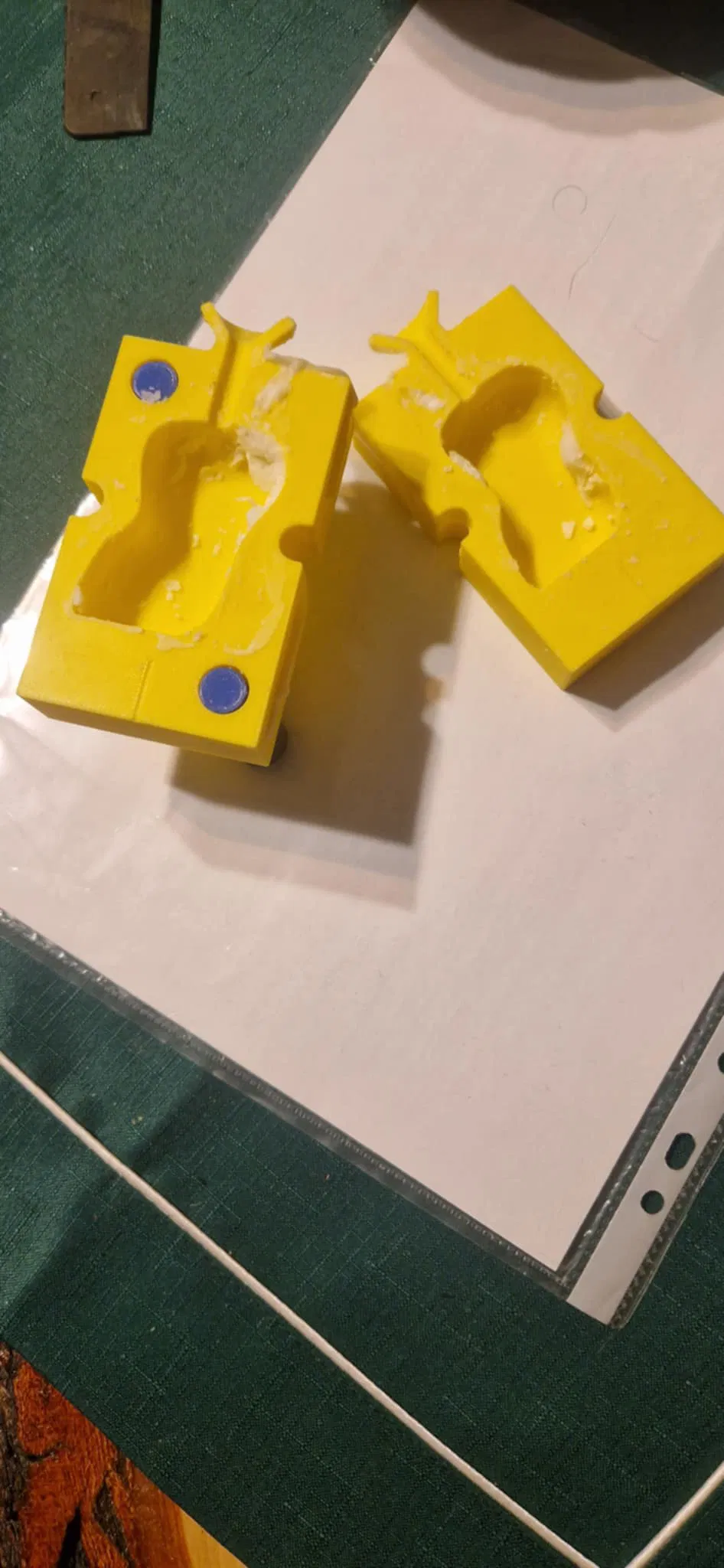 Khuôn làm nến từ sáp đậu nành, lắp ráp đơn giản. Chỉ cần 2 bu-lông và 2 lò xo; yêu cầu thêm 1 ốc M6 và lò xo tối đa fi10. Trước khi đổ sáp, xịt silicone (car silicone) để chống dính.