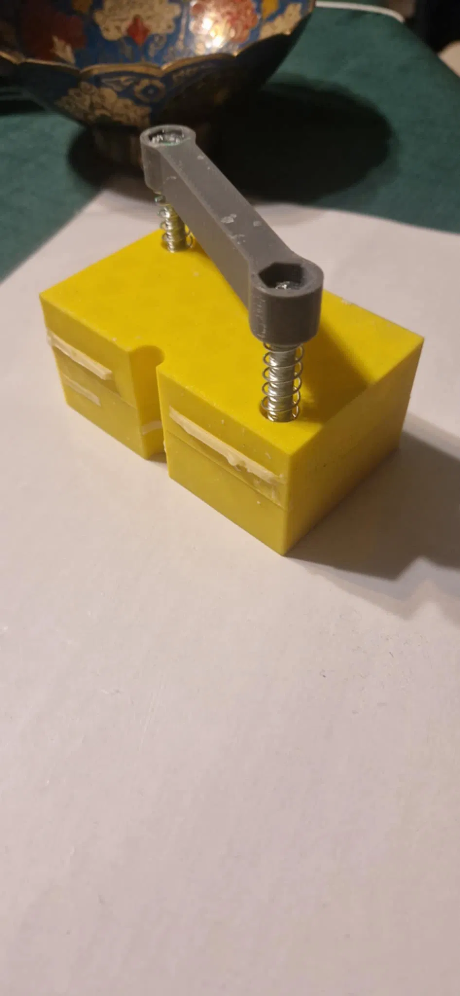 Bạn cần 1 con ốc M6 và lò xo đường kính tối đa fi10. Trước khi đổ sáp, xịt khuôn bằng silicone dạng xịt dùng cho xe hơi (car silicone).