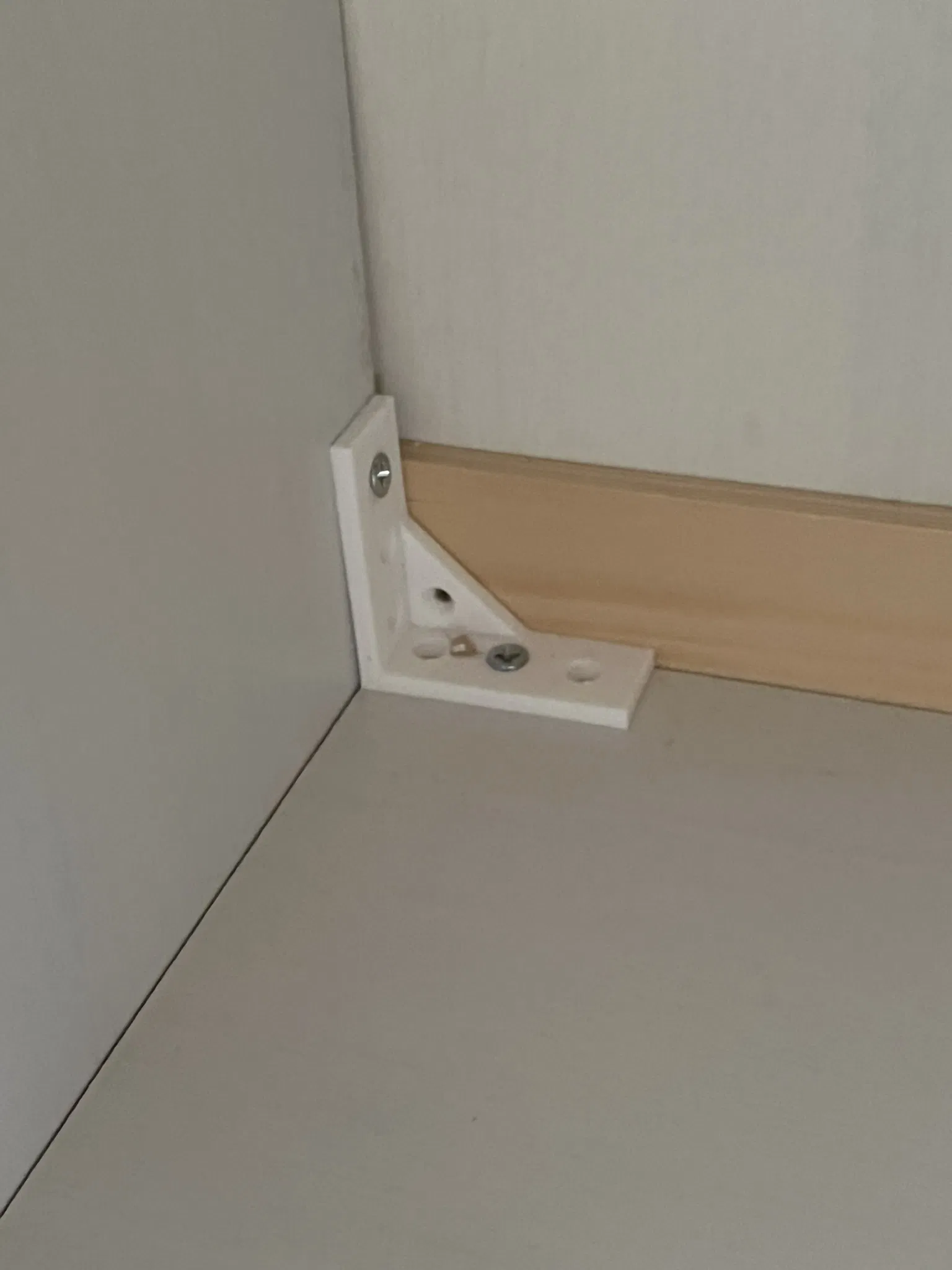 Mình có cái tủ quần áo IKEA mua lại đồ cũ, chắc cũng phải hơn mười năm, có khi tới hai chục năm. Tủ bị rung lắc. Thay vì mua tủ mới, mình làm vài cái bracket rồi xử lý hết tình trạng lắc.