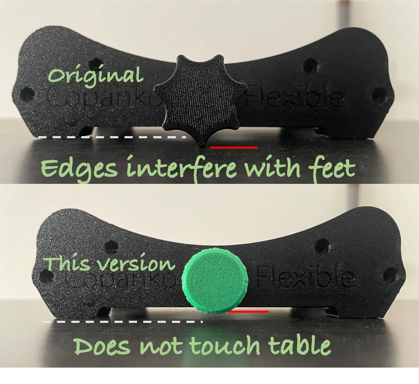 Bản remix đơn giản này của screw knob giúp giảm kích thước phần đầu, để nó không bị cấn vào mặt bàn. Vấn đề này thường gặp với mẫu gốc nếu bạn chọn không dùng rubber feet.