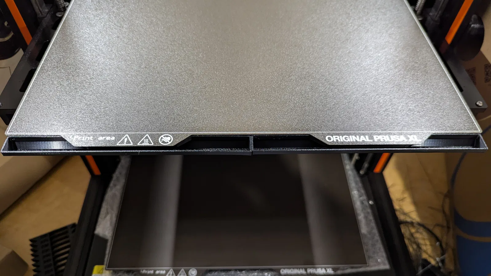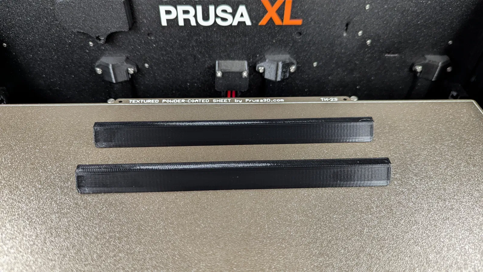 Bản remix khay purge cho Prusa XL dùng 5 nam châm nhỏ 5x2mm (tổng 5 viên mỗi khay) để đạt lực hút tương đương. Gợi ý thêm pause khi in để đặt nam châm giữa chừng; in tốt với PETG.