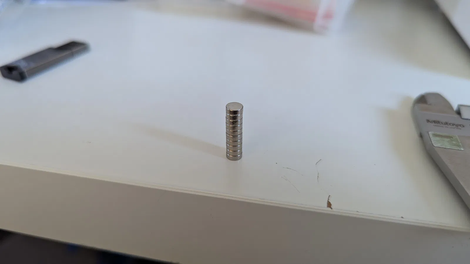 Mình có sẵn mấy viên nam châm nhỏ 5x1.8mm nên đã remix lại thiết kế gốc và thêm 2 viên nữa (tổng 5 viên mỗi khay) để đạt lực hút tương đương.