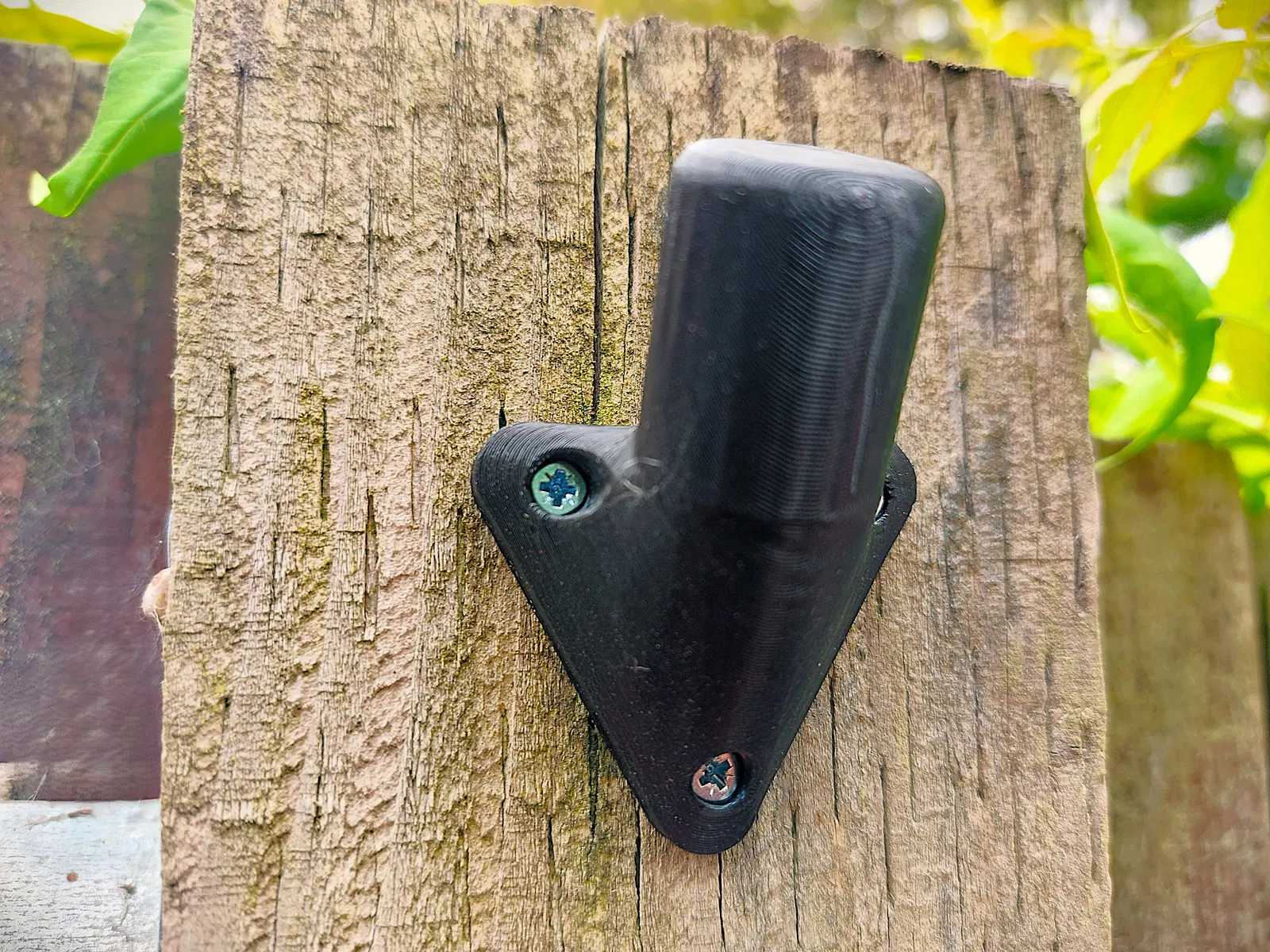 Bản trong hình được in bằng Basic PLA màu đen và để ngoài thời tiết hơn 2 tháng (có cả đợt nắng nóng!) mà không thấy dấu hiệu cong vênh. Tuy vậy, về lâu dài thì PETG hoặc vật liệu cứng hơn có thể sẽ tốt hơn.