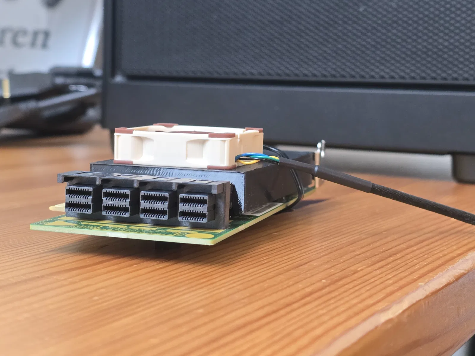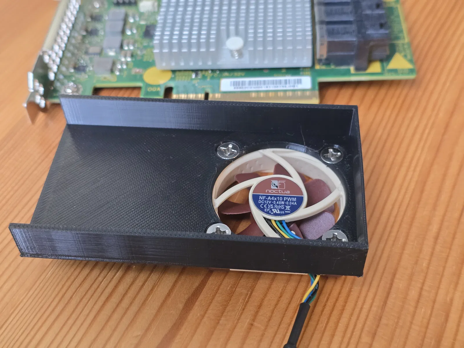 Quạt Noctua 40mm làm mát LSI 9305; luồng gió đi vào rồi xả ra phía sau.