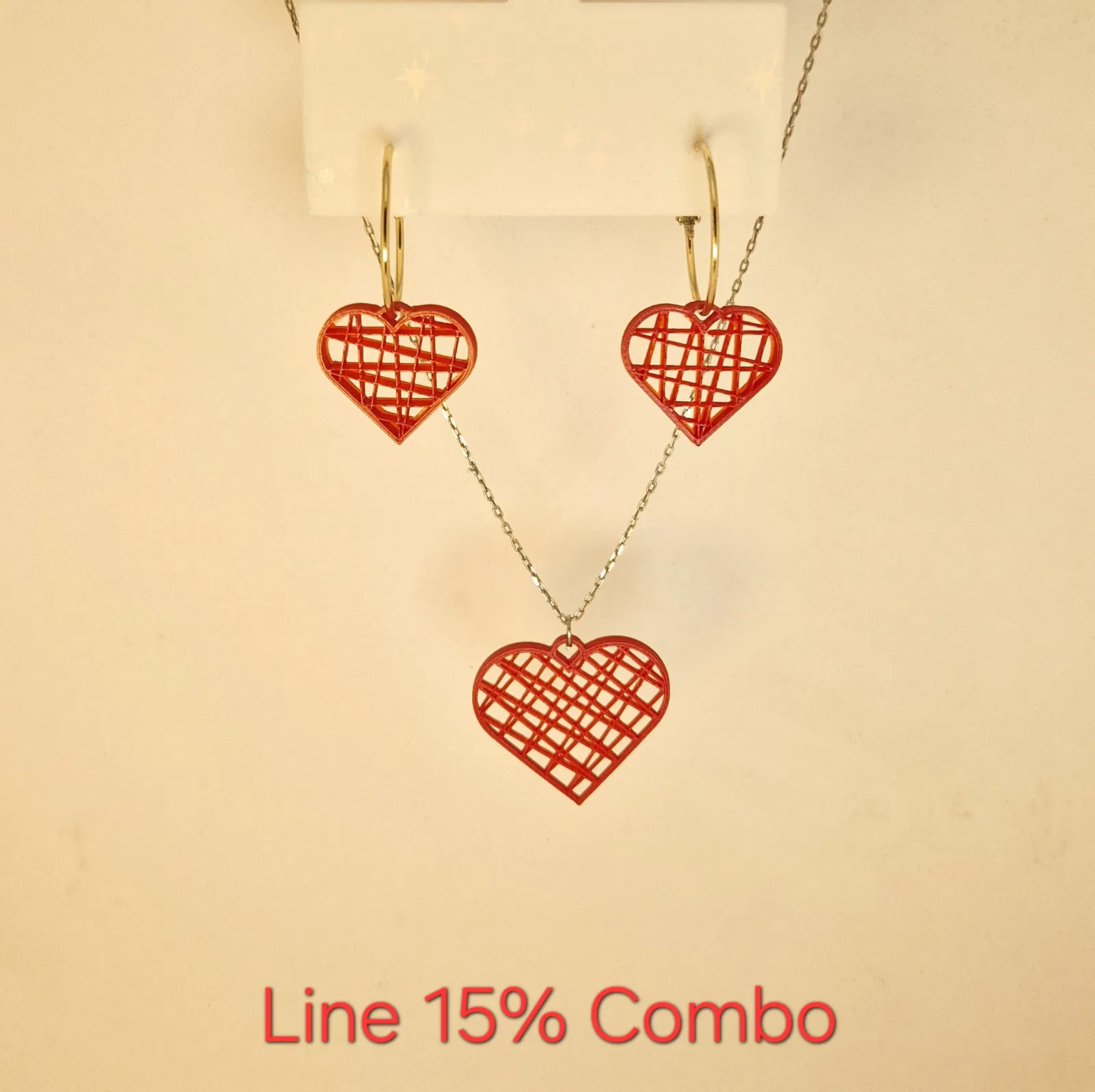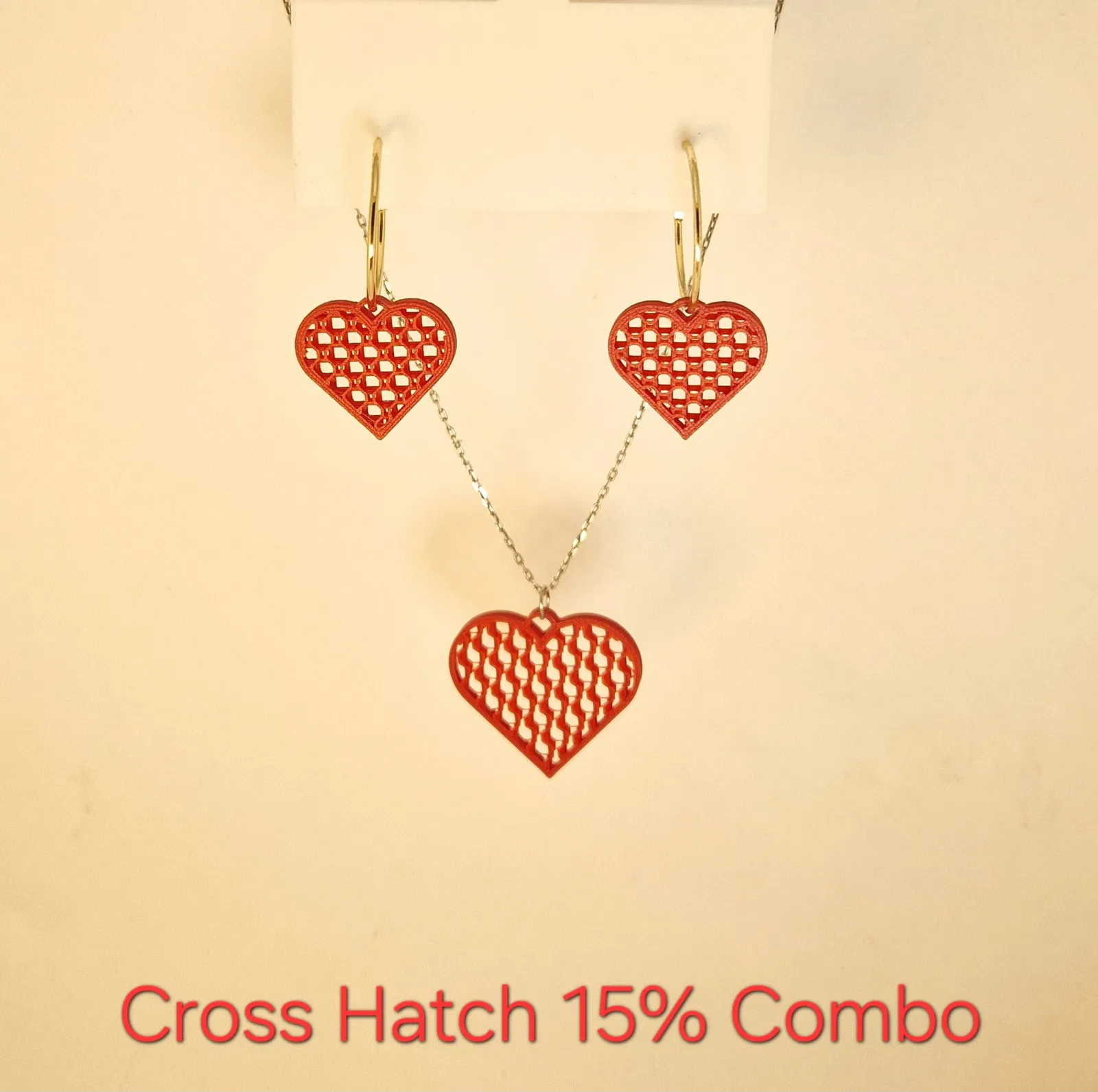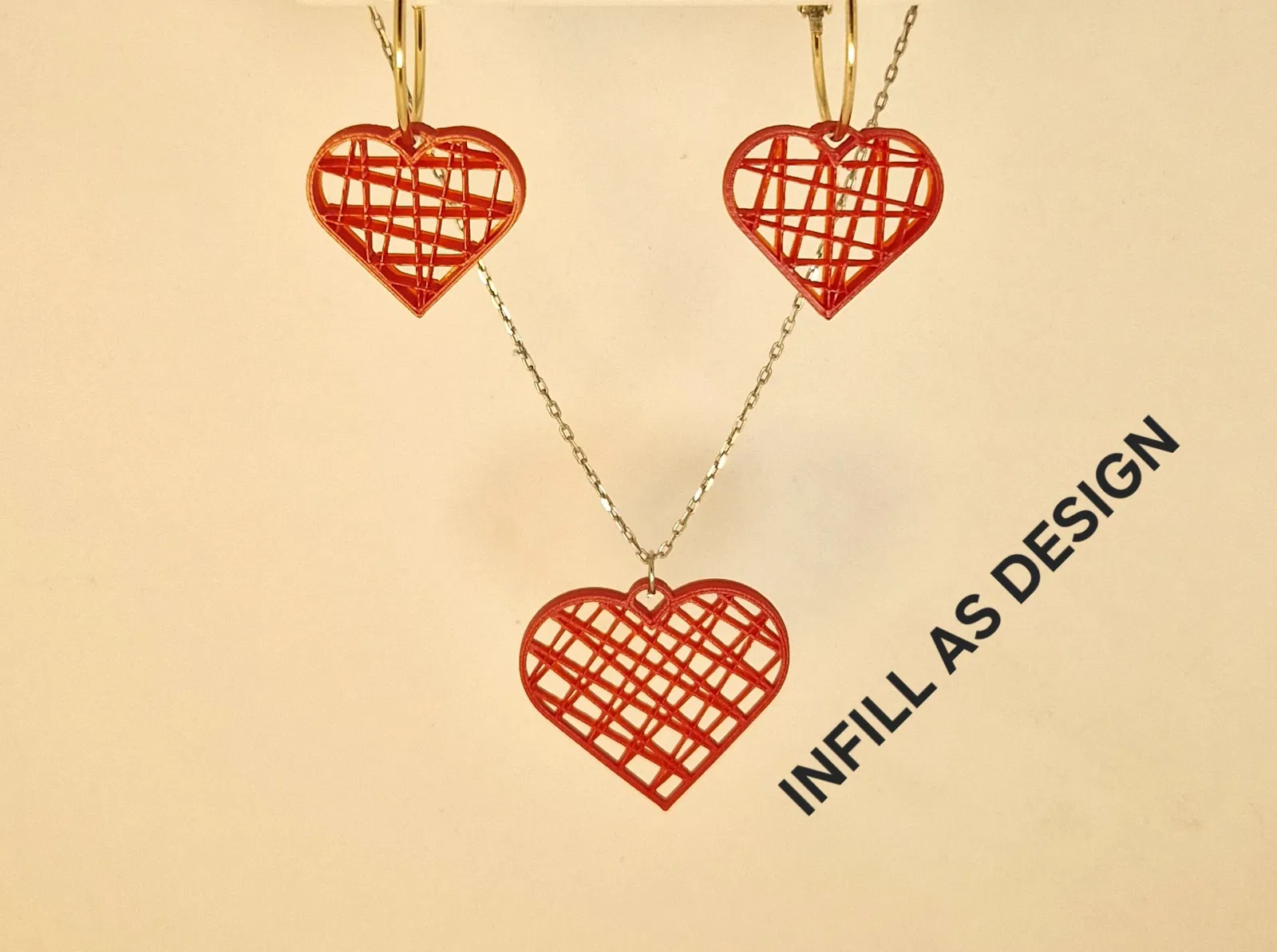 Infinite Heart là bộ trang sức trái tim hình học dạng mô-đun, nơi infill trở thành hoạ tiết chính. Tùy chỉnh bông tai và mặt dây chuyền bằng infill pattern/density để tạo vô hạn kiểu nhìn—từ mảnh nhẹ tới dày, giàu chiều sâu.