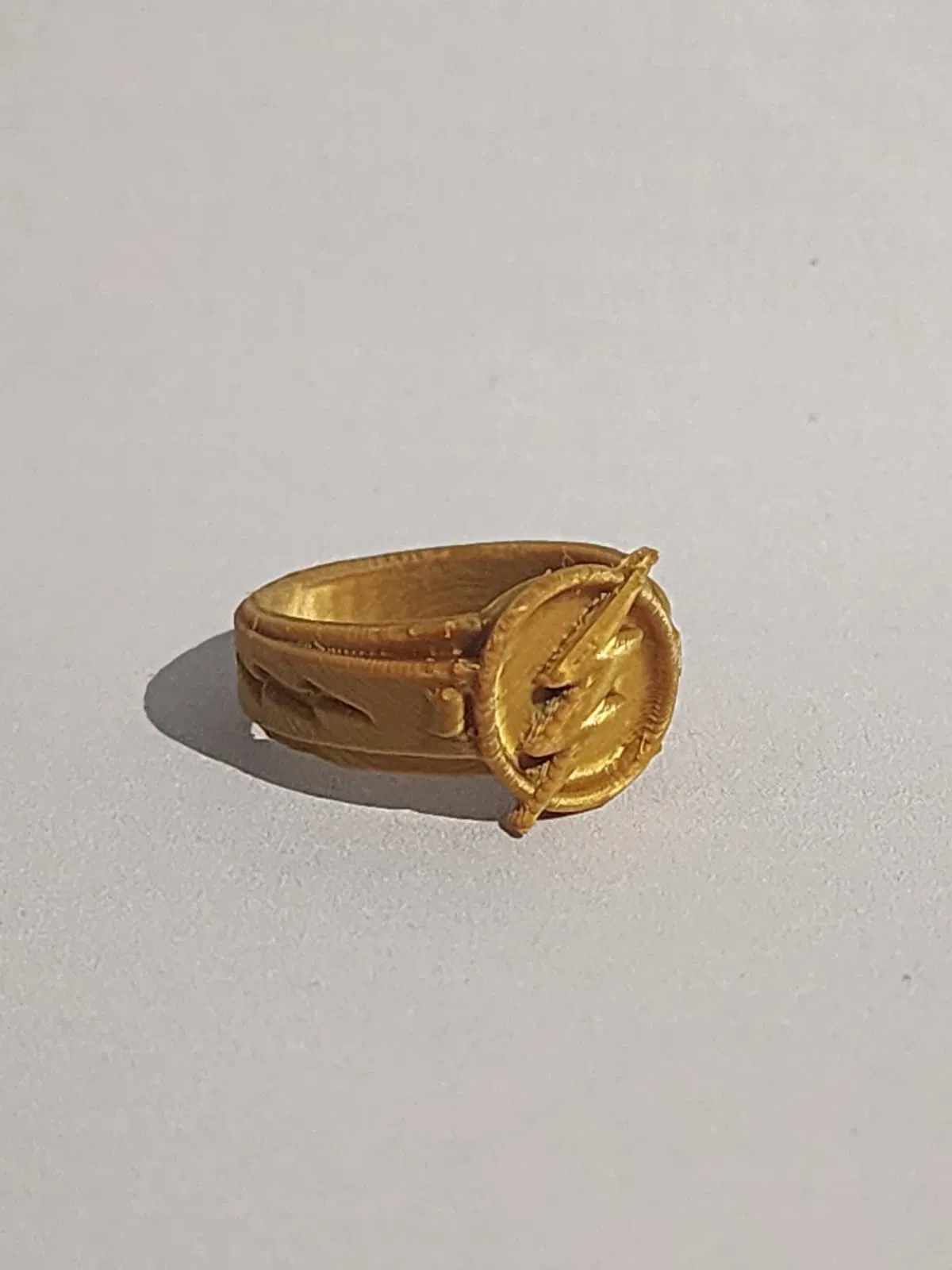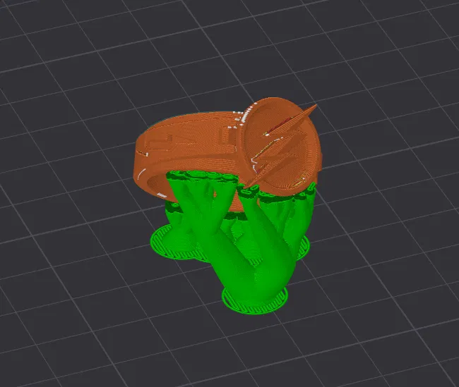 Chiếc nhẫn lấy cảm hứng từ The Flash với biểu tượng tia sét đỏ nổi bật, form đeo gọn đẹp. Nên in PLA màu gold/vàng và thêm insert đỏ bóng. Tham khảo file .3mf để chọn orientation tối ưu khi in.